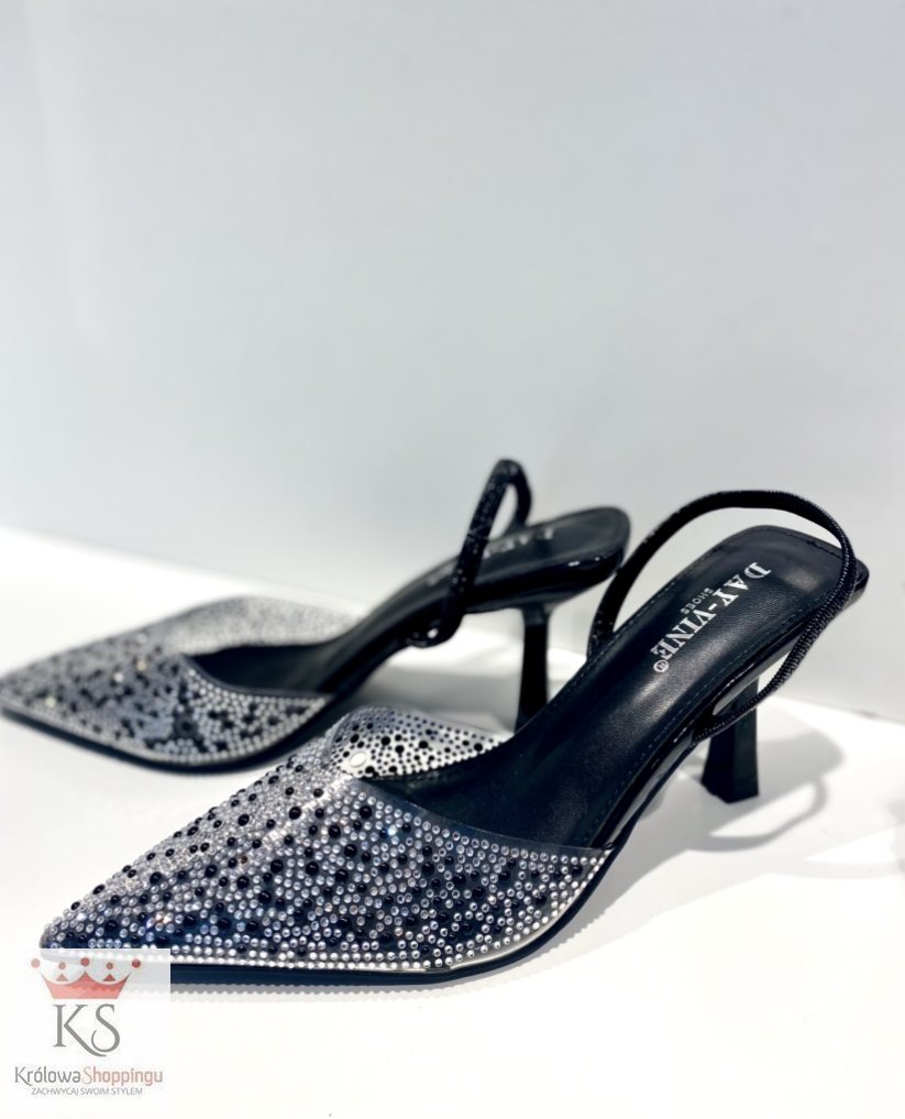 Powiadomienie o dostępności: Czółenka cyrkoniowe gumka tył czerń