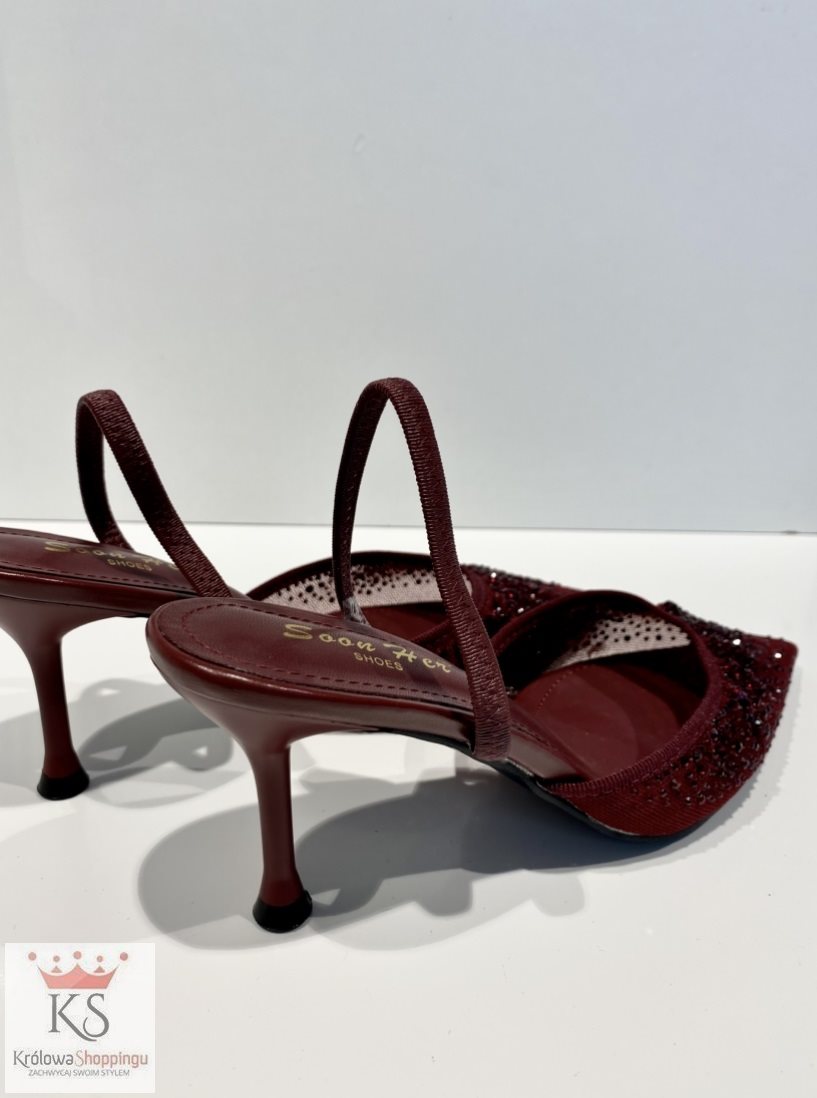 Czółenka do szpica cyrkonie burgund