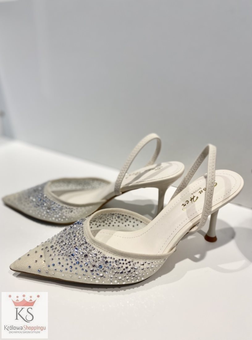 Czółenka do szpica cyrkonie krem