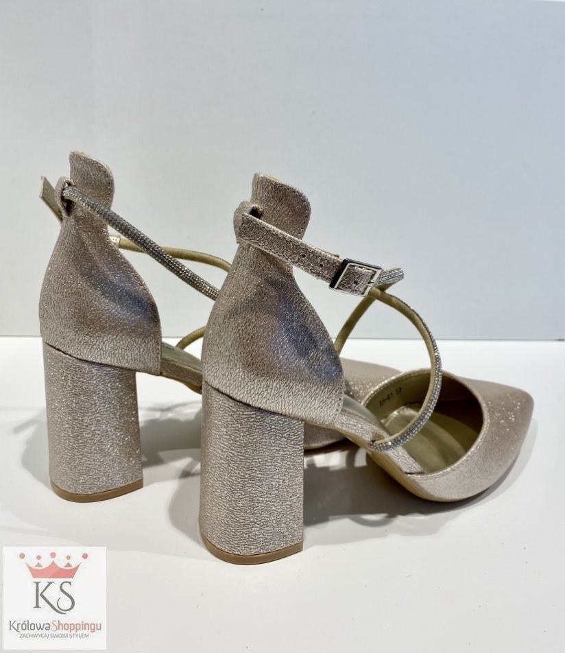Powiadomienie o dostępności: Czółenka na słupku ozdobny pasek złoto