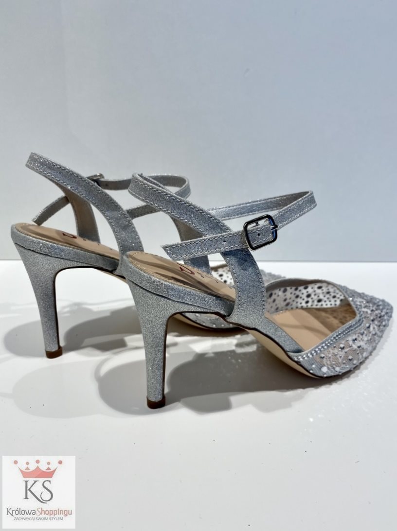 Czółenka na szpilce cekinki srebro