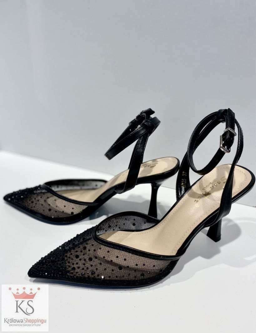 Powiadomienie o dostępności: Czółenka na szpilce przód cyrkonie czerń