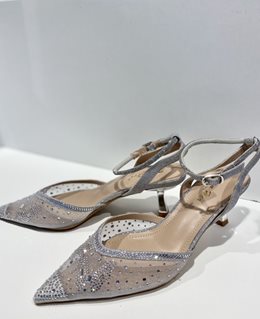 Powiadomienie o dostępności: Czółenka na szpilce z przezroczystym przodem srebr