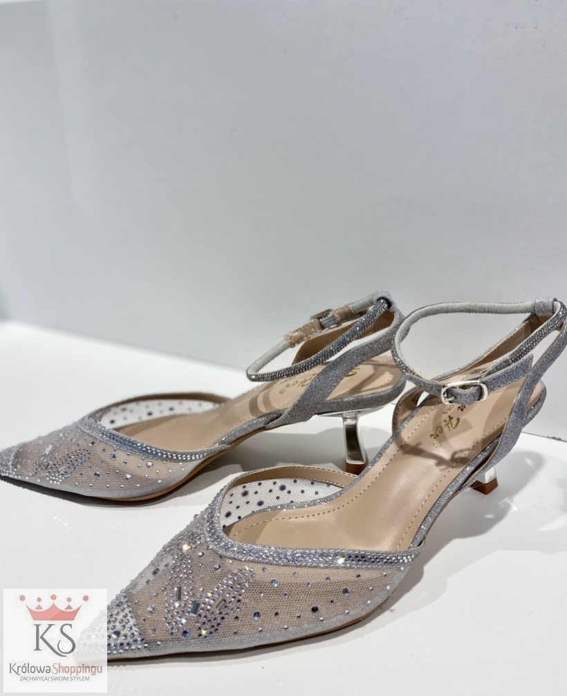 Czółenka na szpilce z przezroczystym przodem srebr