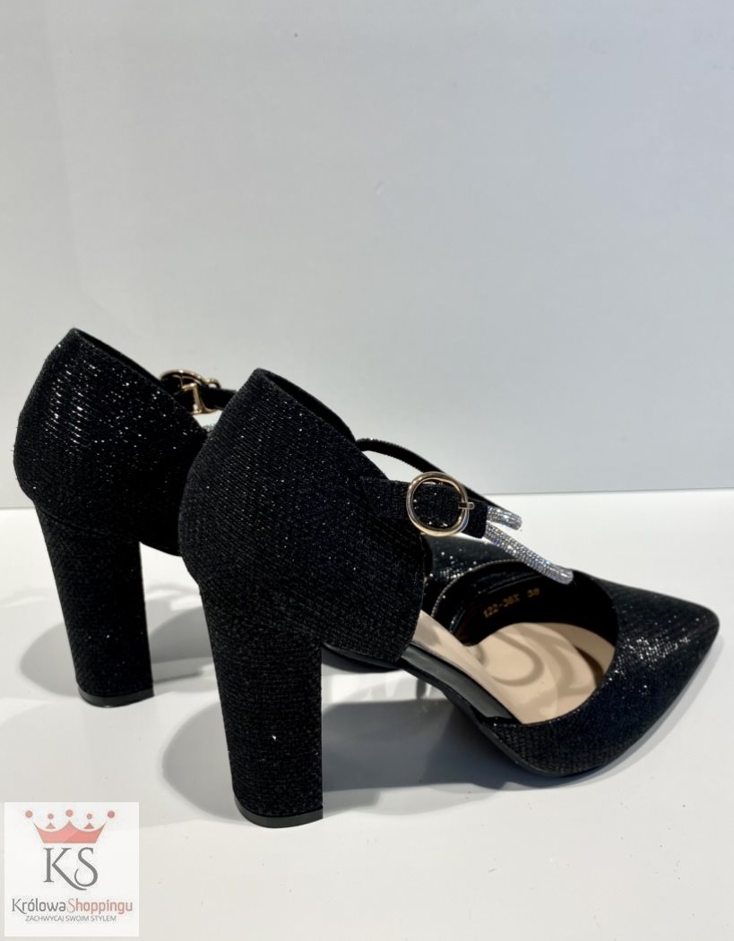 Czółenka z brokatowym paskiem Y czerń