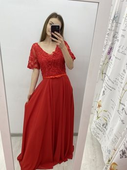 Powiadomienie o dostępności: Długa sukienka kwiatowy rękawek czerwony