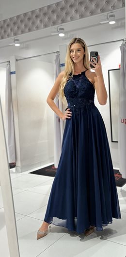 Powiadomienie o dostępności: Długa sukienka na ramiączkach granat