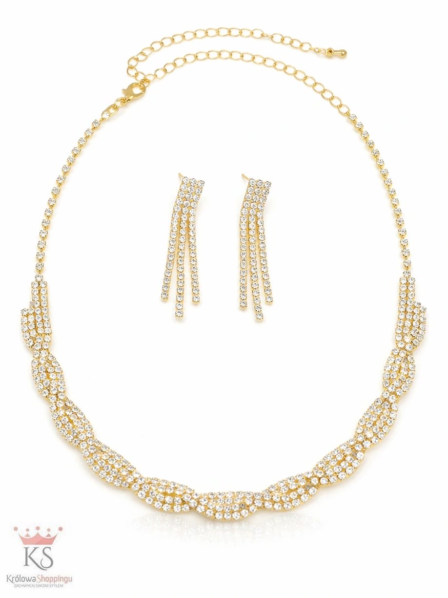 Komplet z plecionym naszyjnikiem i długimi kolczyk