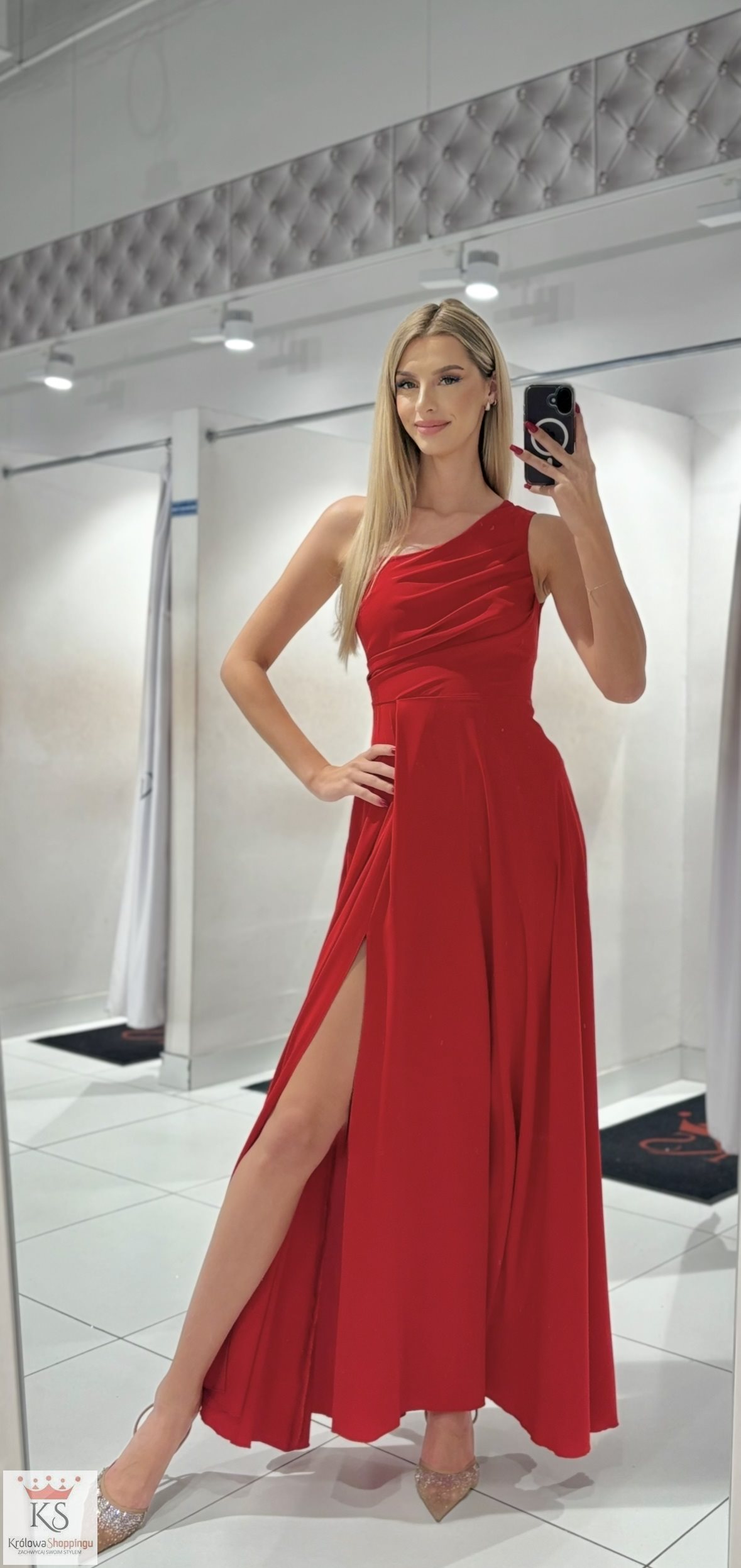Powiadomienie o dostępności: Sukienka długa asymetryczne wiązanie czerwień