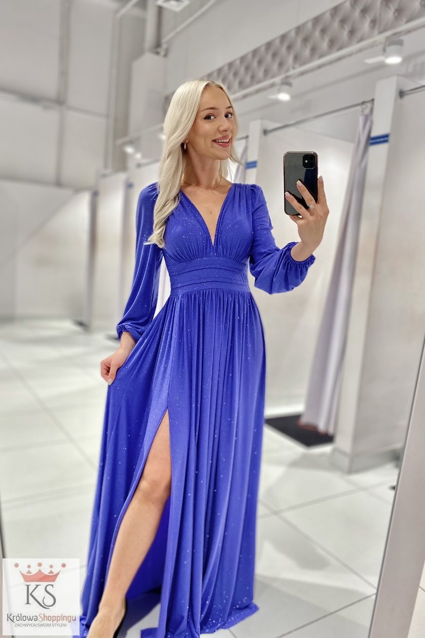 Sukienka długa brokat odcięcie długi rękaw fiolet