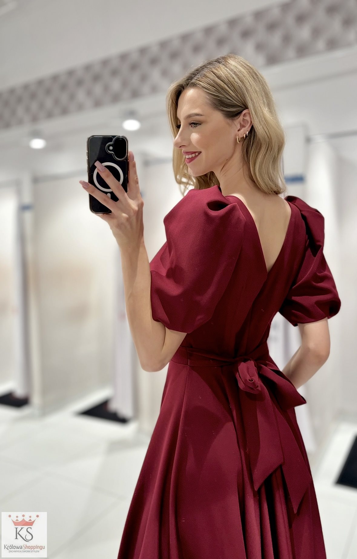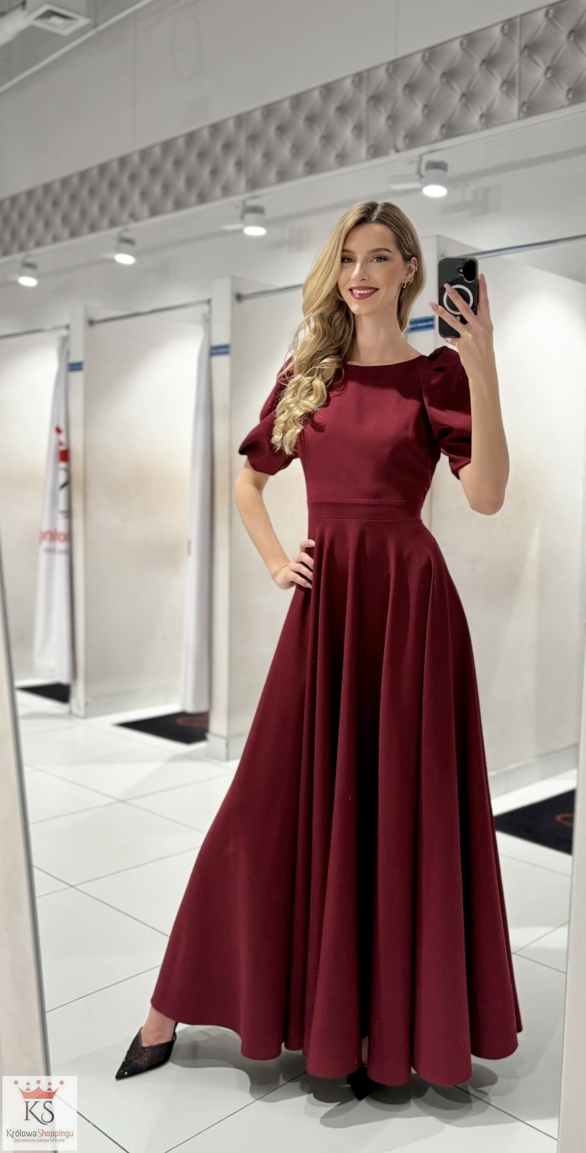 Sukienka długa bufiaste rękawki bordo