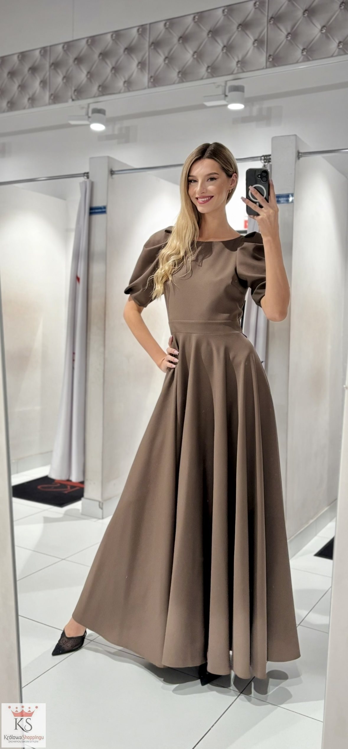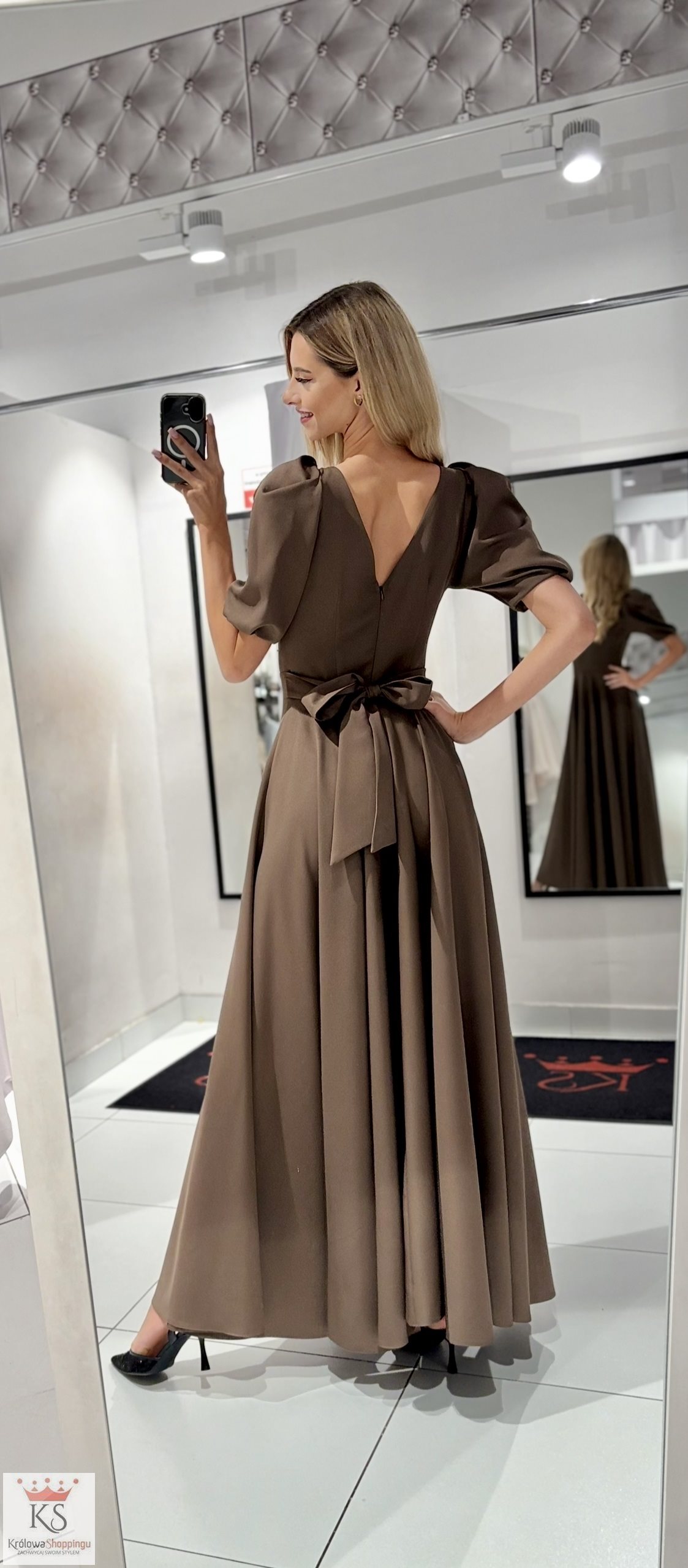 Powiadomienie o dostępności: Sukienka długa bufiaste rękawki ciemny brąz