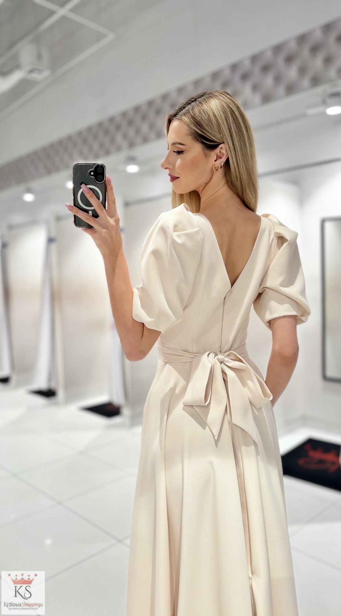 Sukienka długa bufiaste rękawki ecru