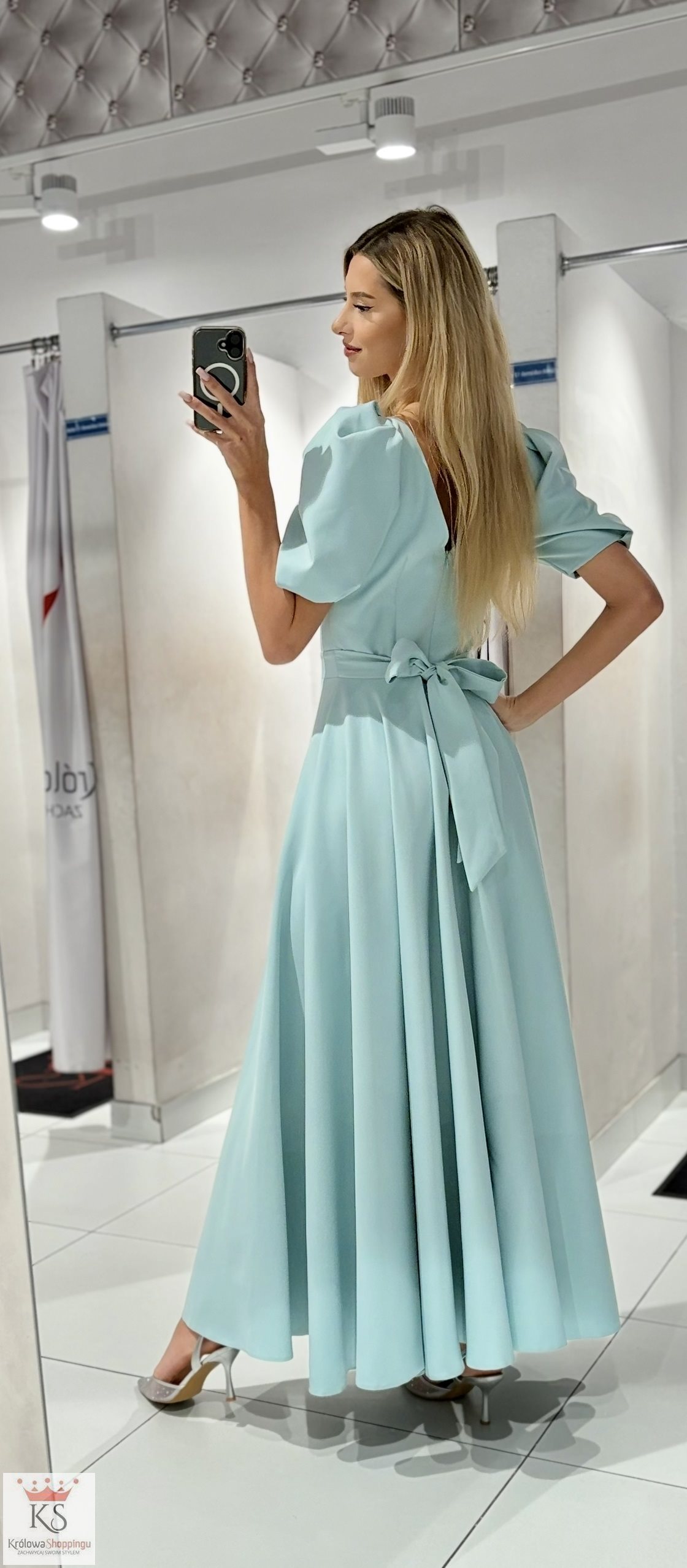 Powiadomienie o dostępności: Sukienka długa bufiaste rękawki mięta