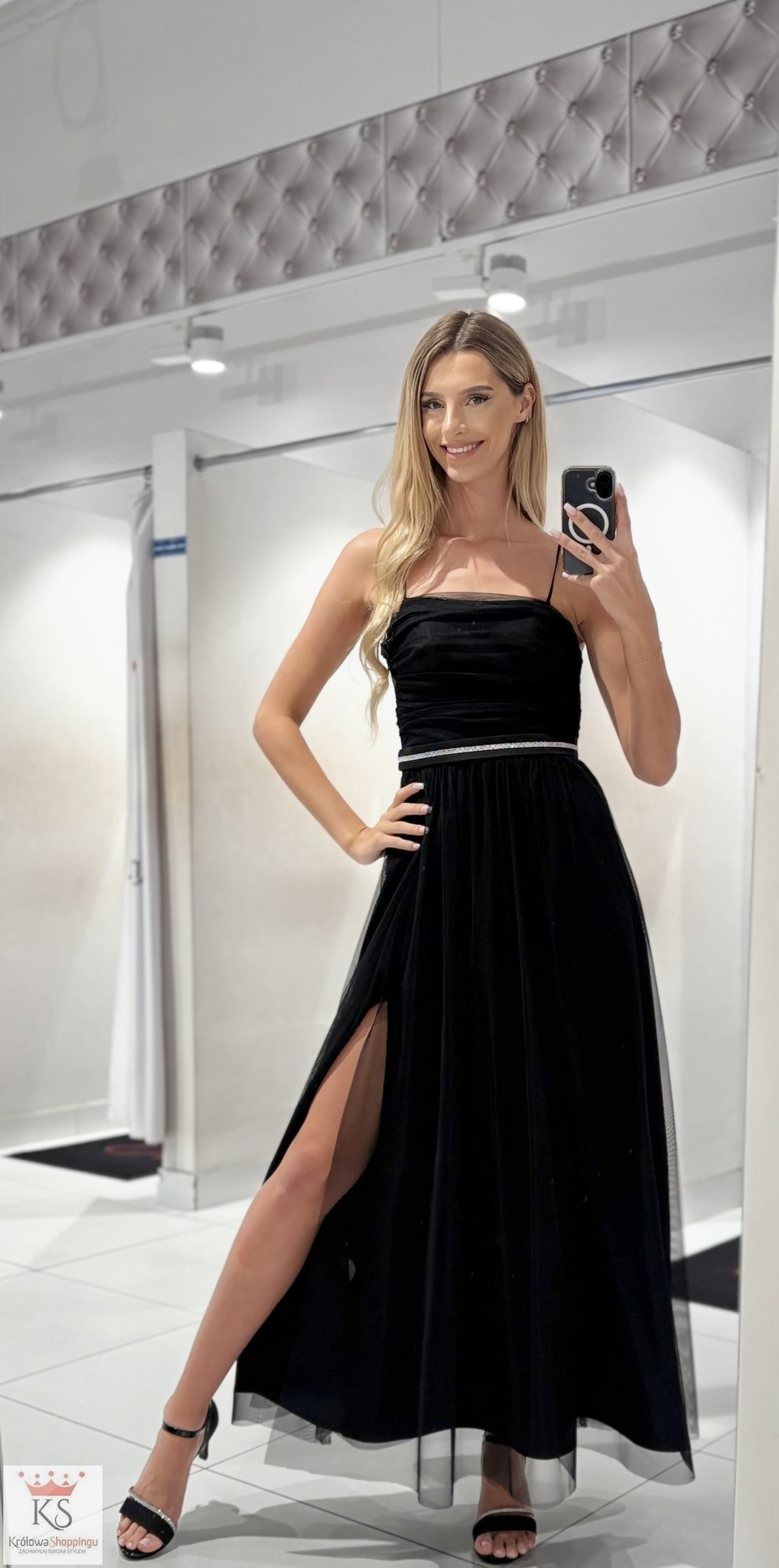 Sukienka długa cała tiulowa wiązanie tył czerń