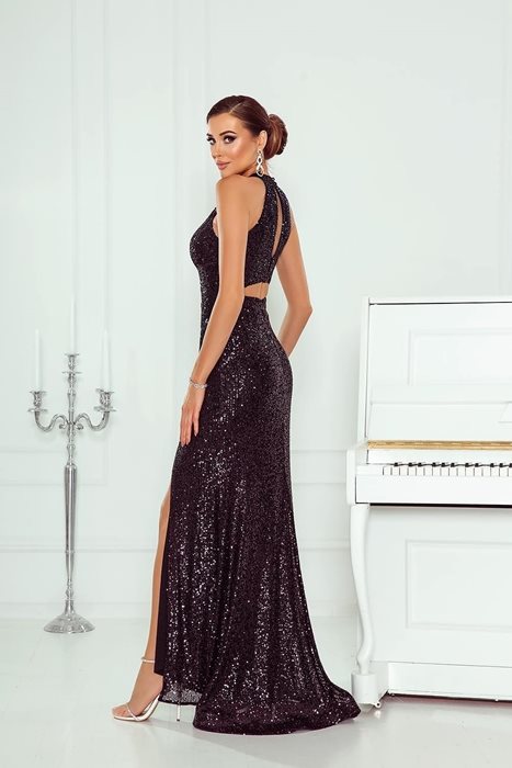 Powiadomienie o dostępności: sukienka długa cekinowa pod szyję czerń