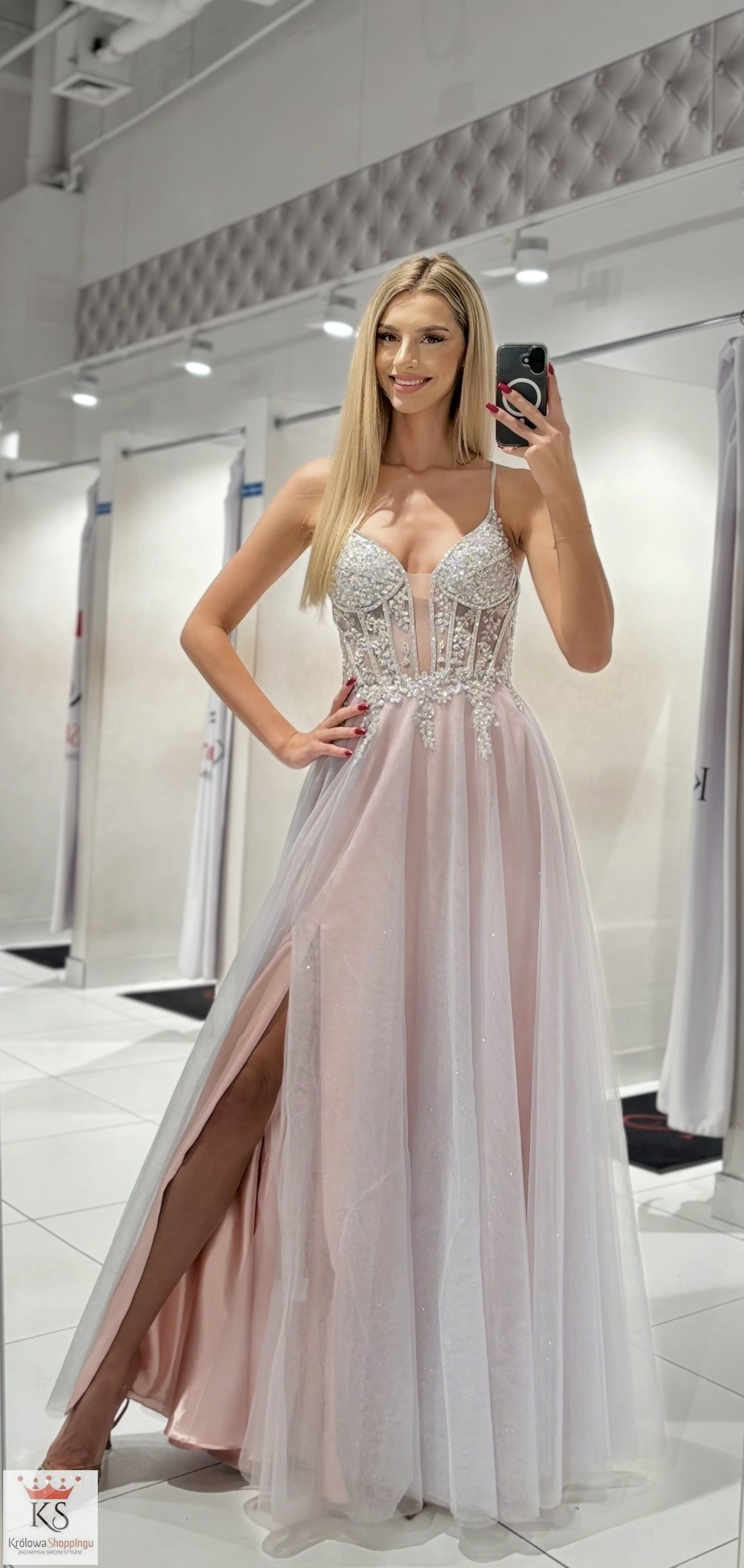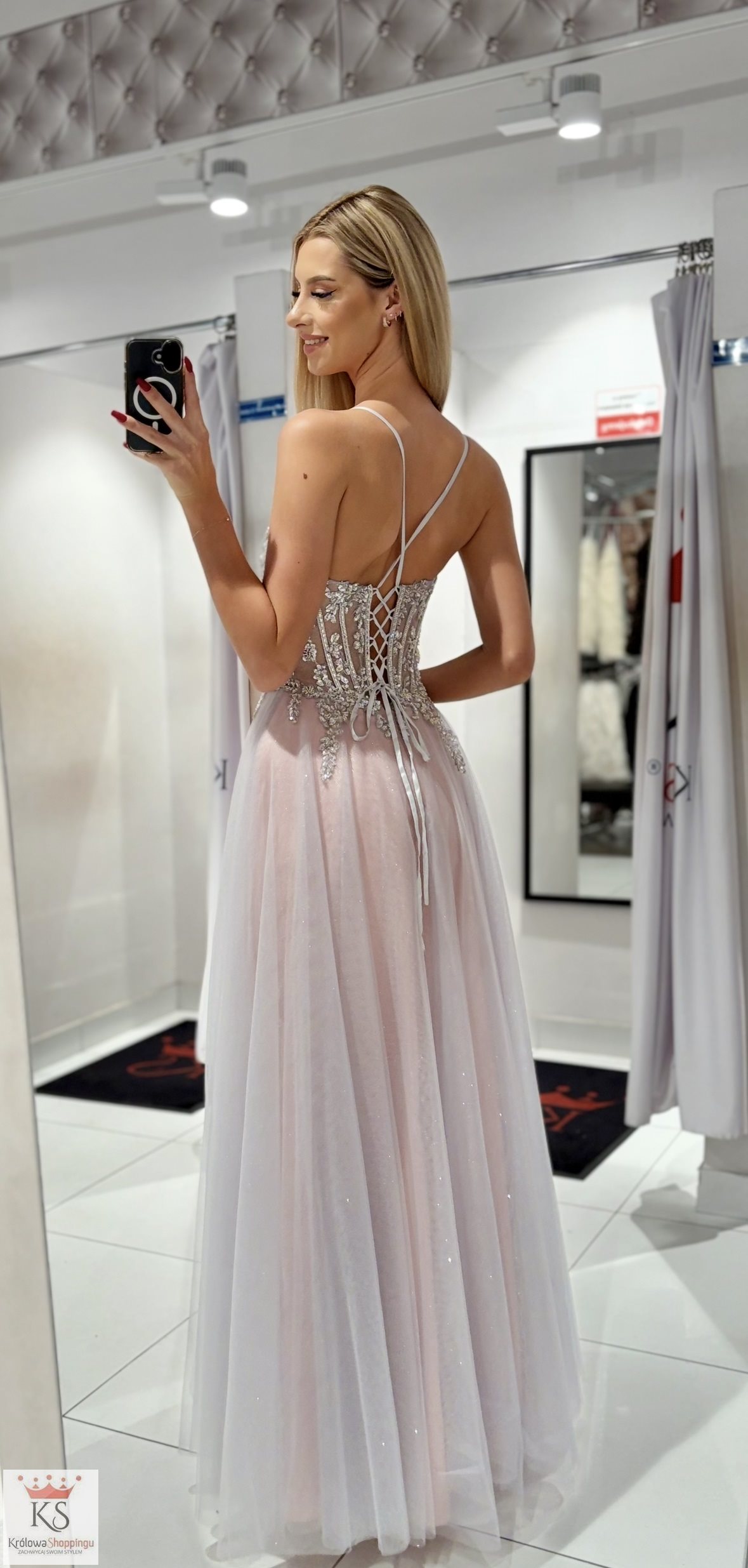 Powiadomienie o dostępności: Sukienka długa gorset tiul brokat szary/róż