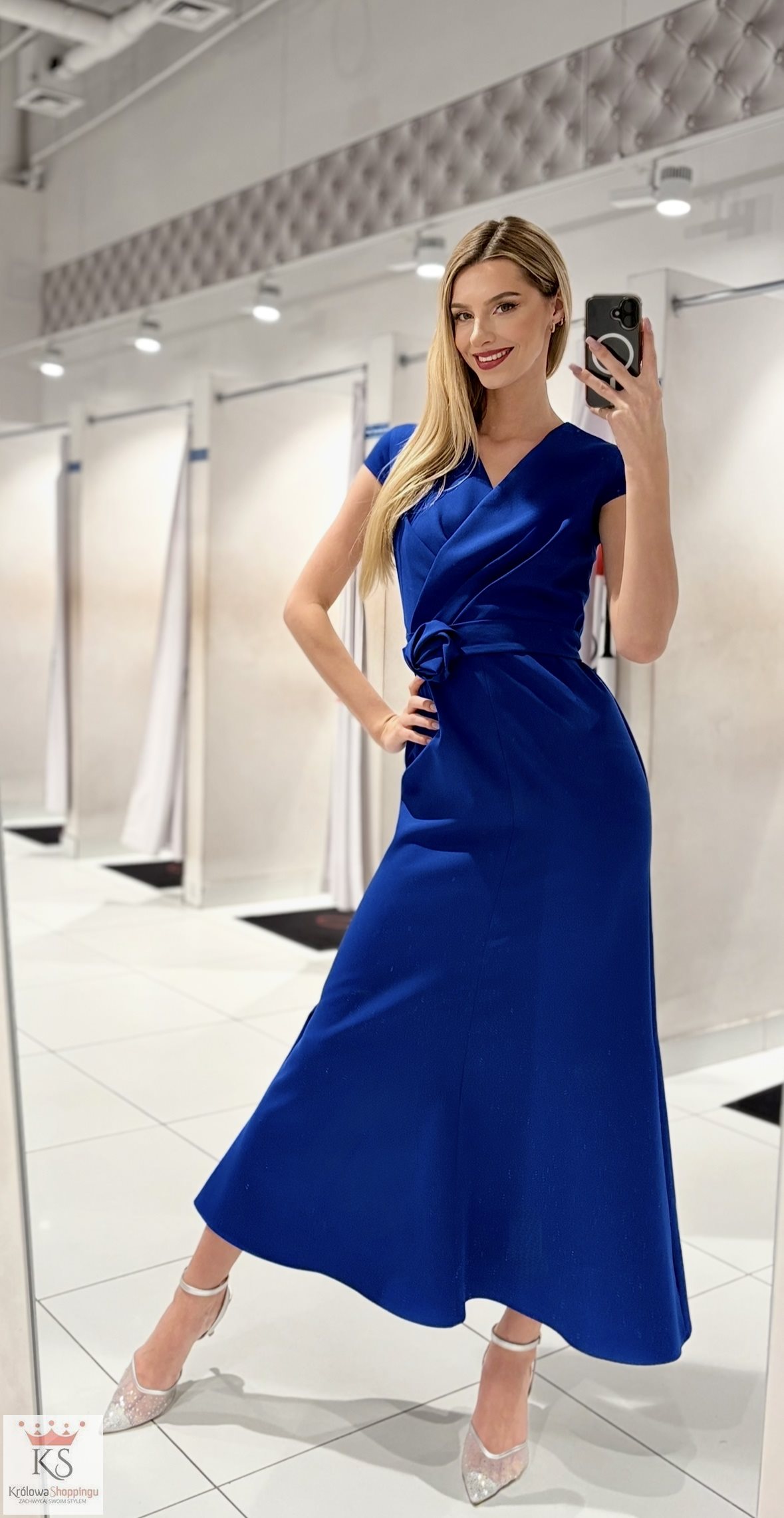 Sukienka długa klasyczna z rękawkiem pasek chaber