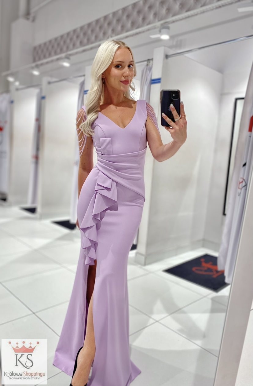 sukienka długa koraliki ramiona lilia