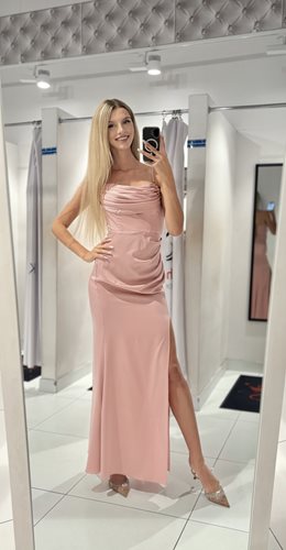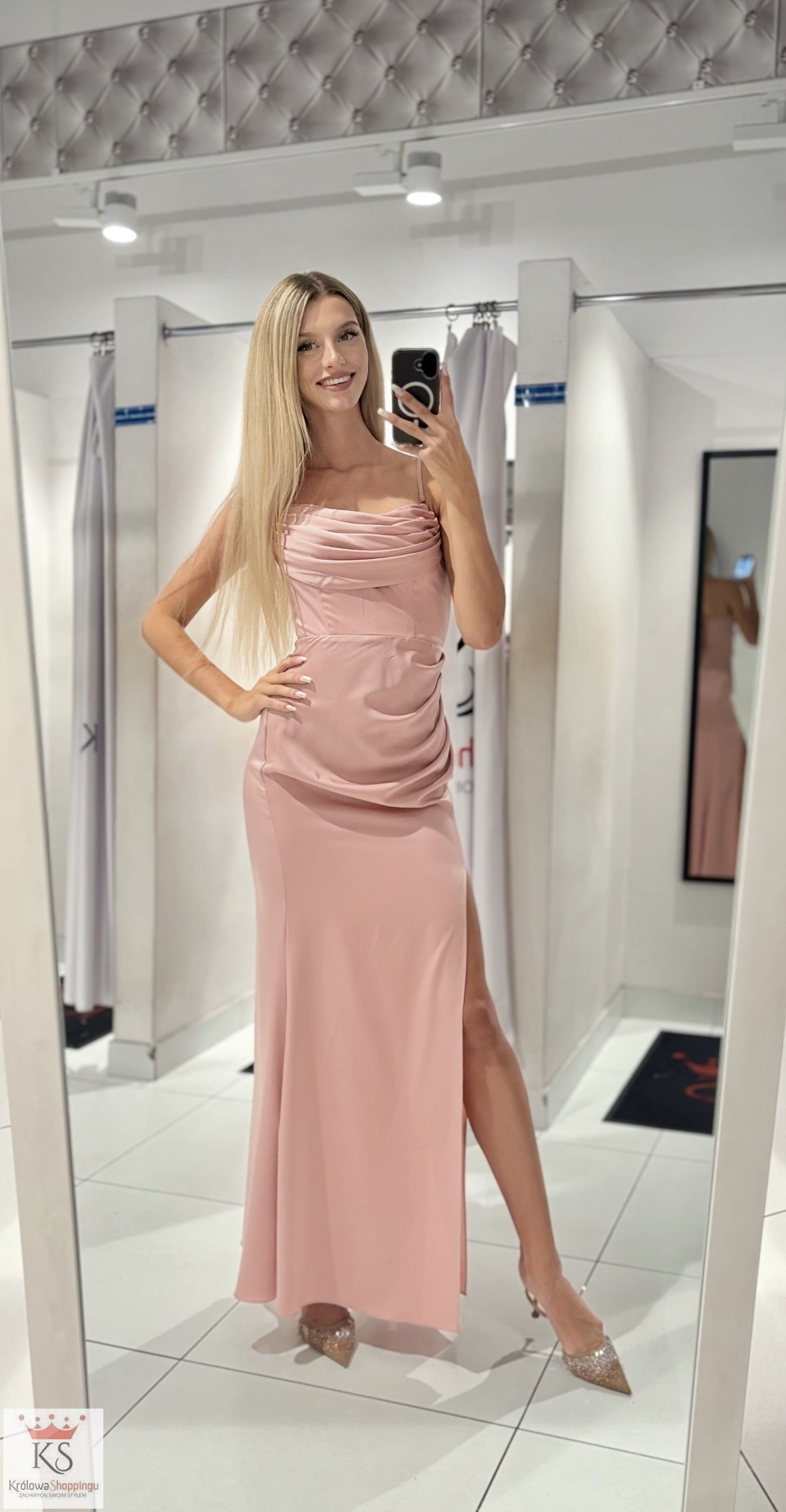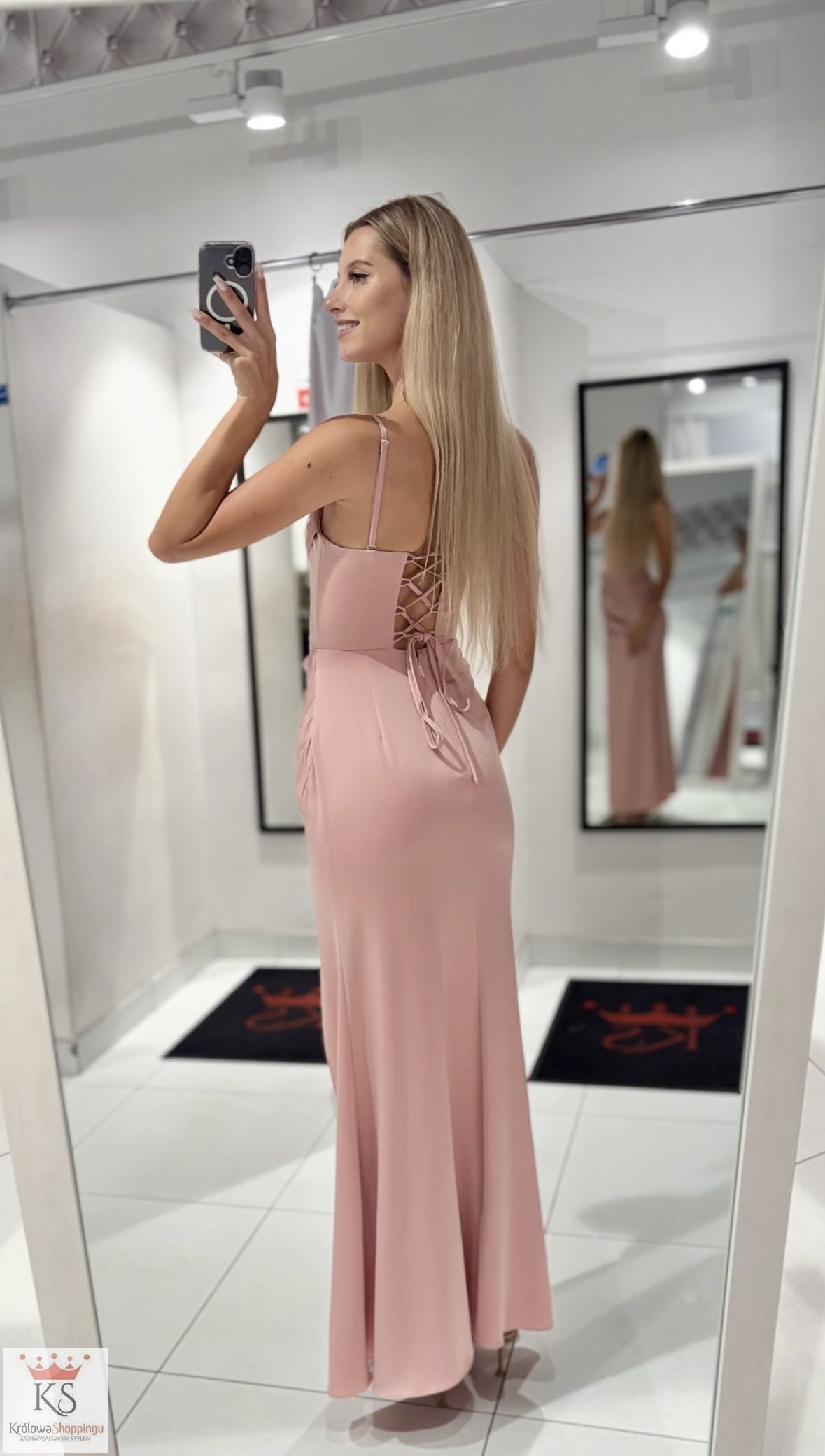 Powiadomienie o dostępności: Sukienka długa marszczenia dekolt woda p.róż
