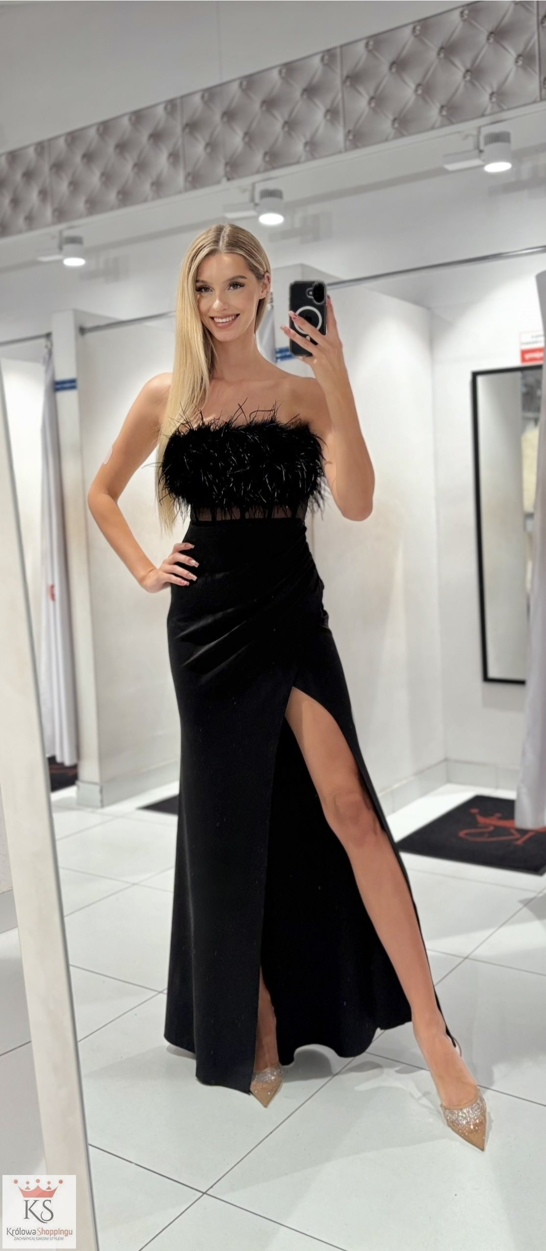 Powiadomienie o dostępności: Sukienka długa rybka gorset siateczka pióra czerń