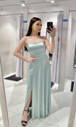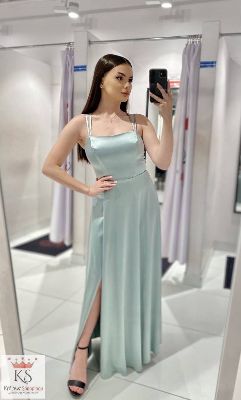 Powiadomienie o dostępności: Sukienka długa satyna wiązane plecy pistacja