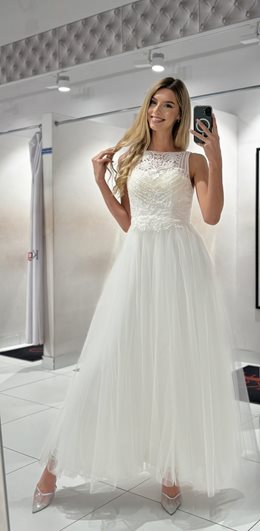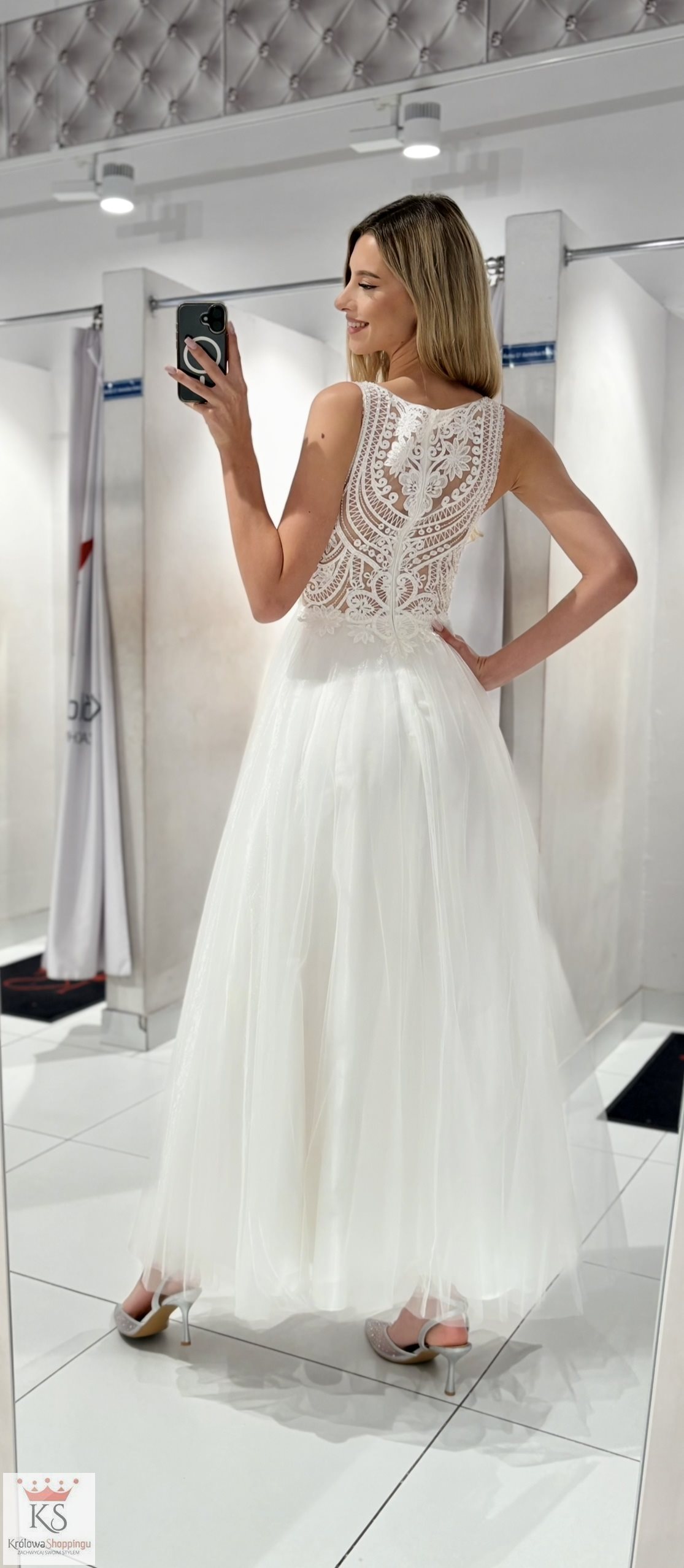 Powiadomienie o dostępności: Sukienka długa ślubna zabudowana ozdobna góra biel