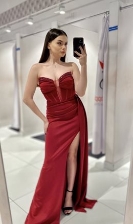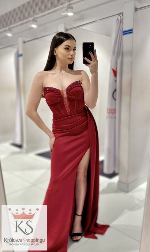 Powiadomienie o dostępności: Sukienka długa syrenka koraliki dekolt bordo