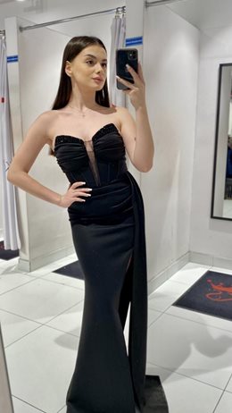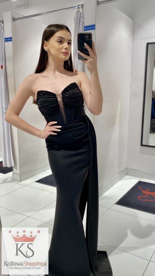 Powiadomienie o dostępności: Sukienka długa syrenka koraliki dekolt czerń