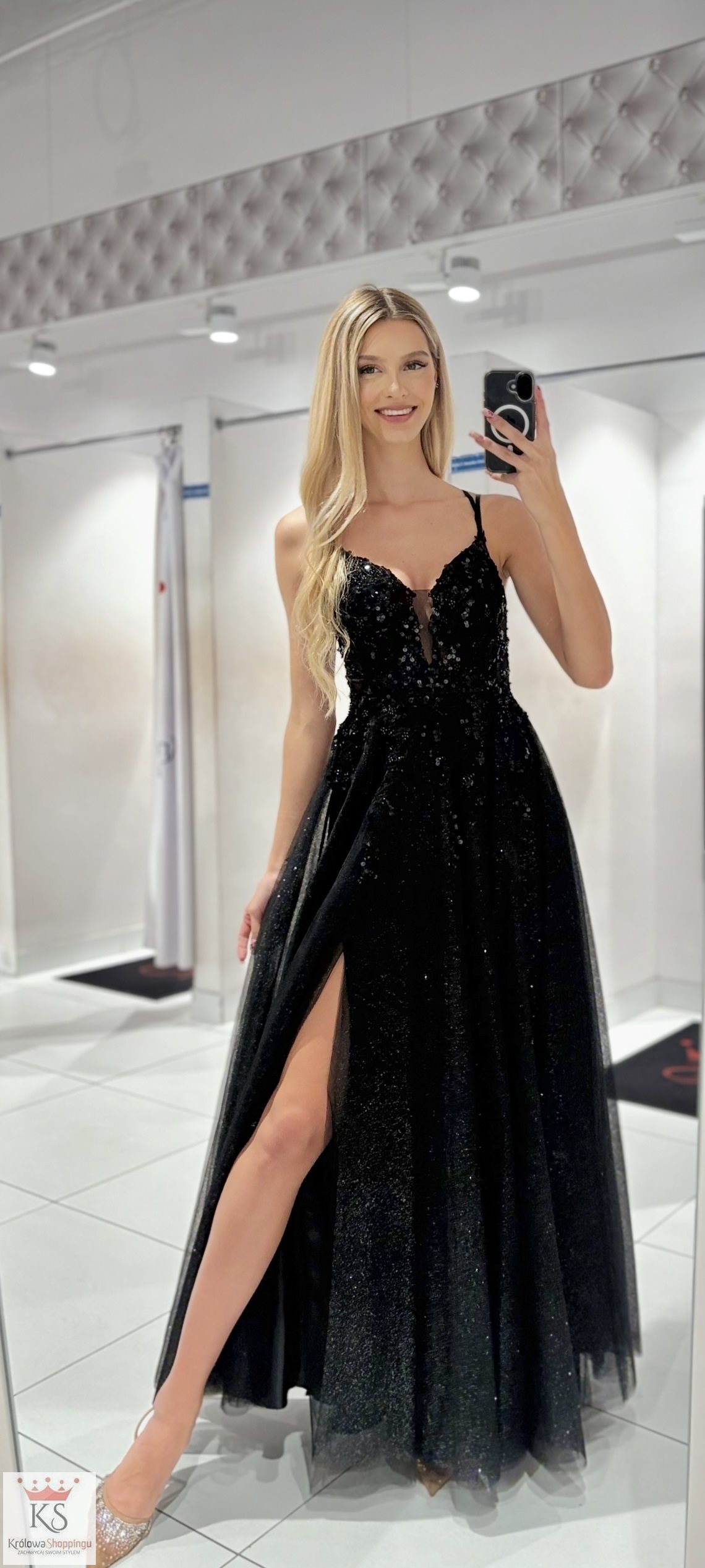 Powiadomienie o dostępności: Sukienka długa tiul cekiny gorset czerń