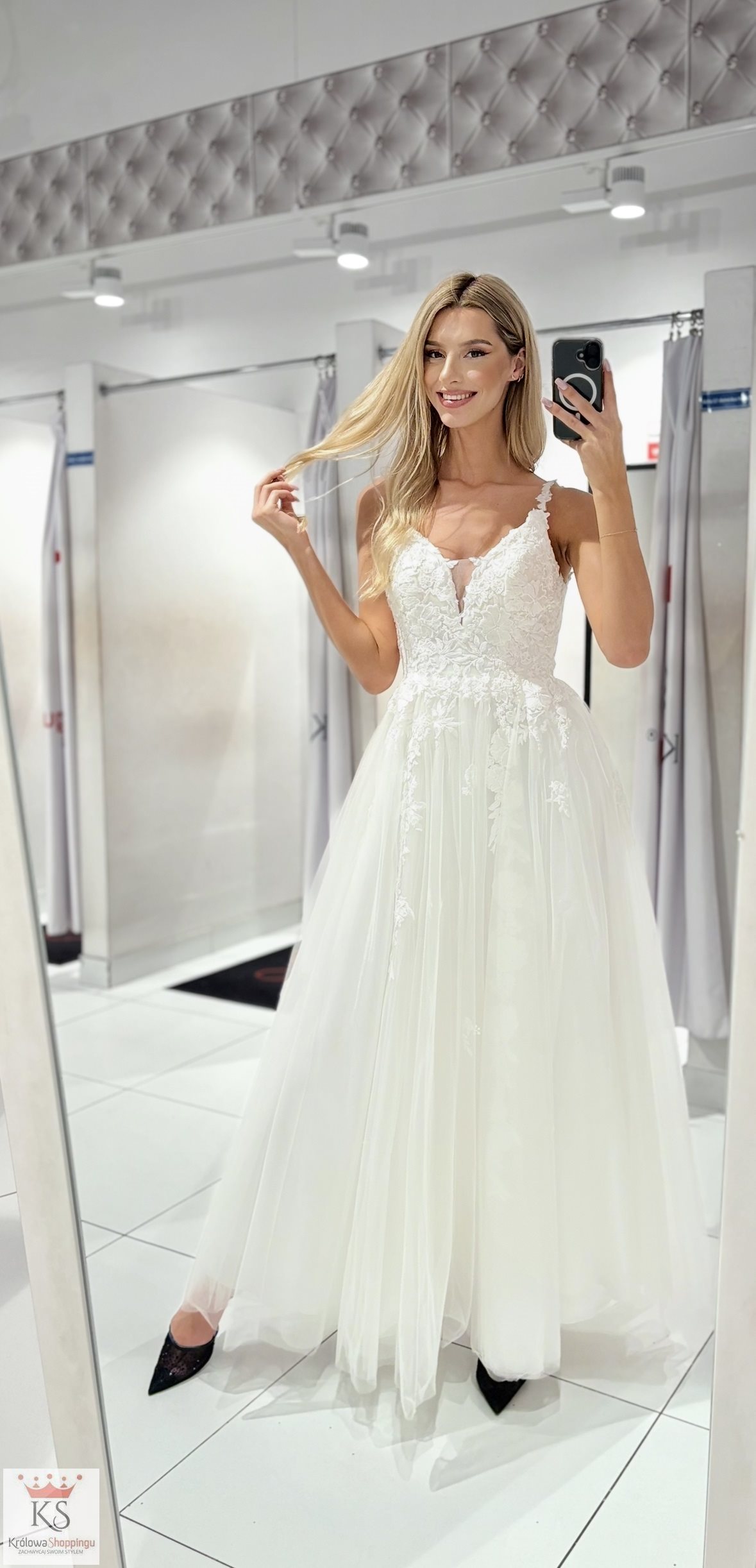 Powiadomienie o dostępności: Sukienka długa tiul i koronki po całości biel