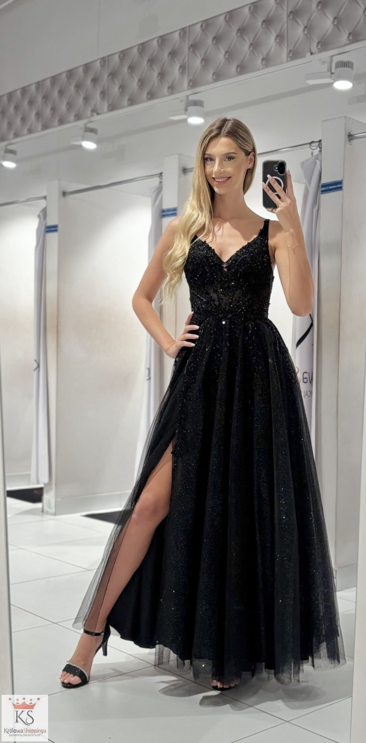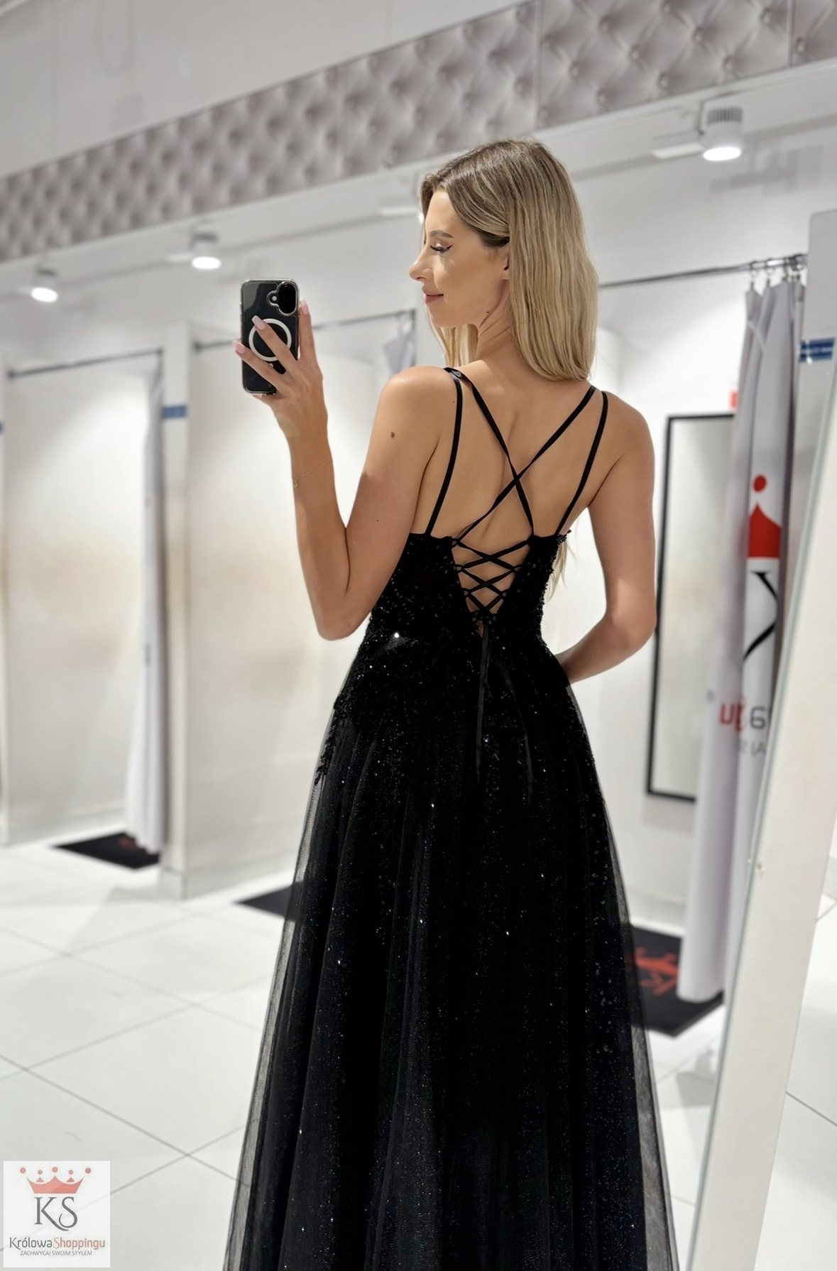 Powiadomienie o dostępności: Sukienka długa tiul wyszywana koralikami czerń