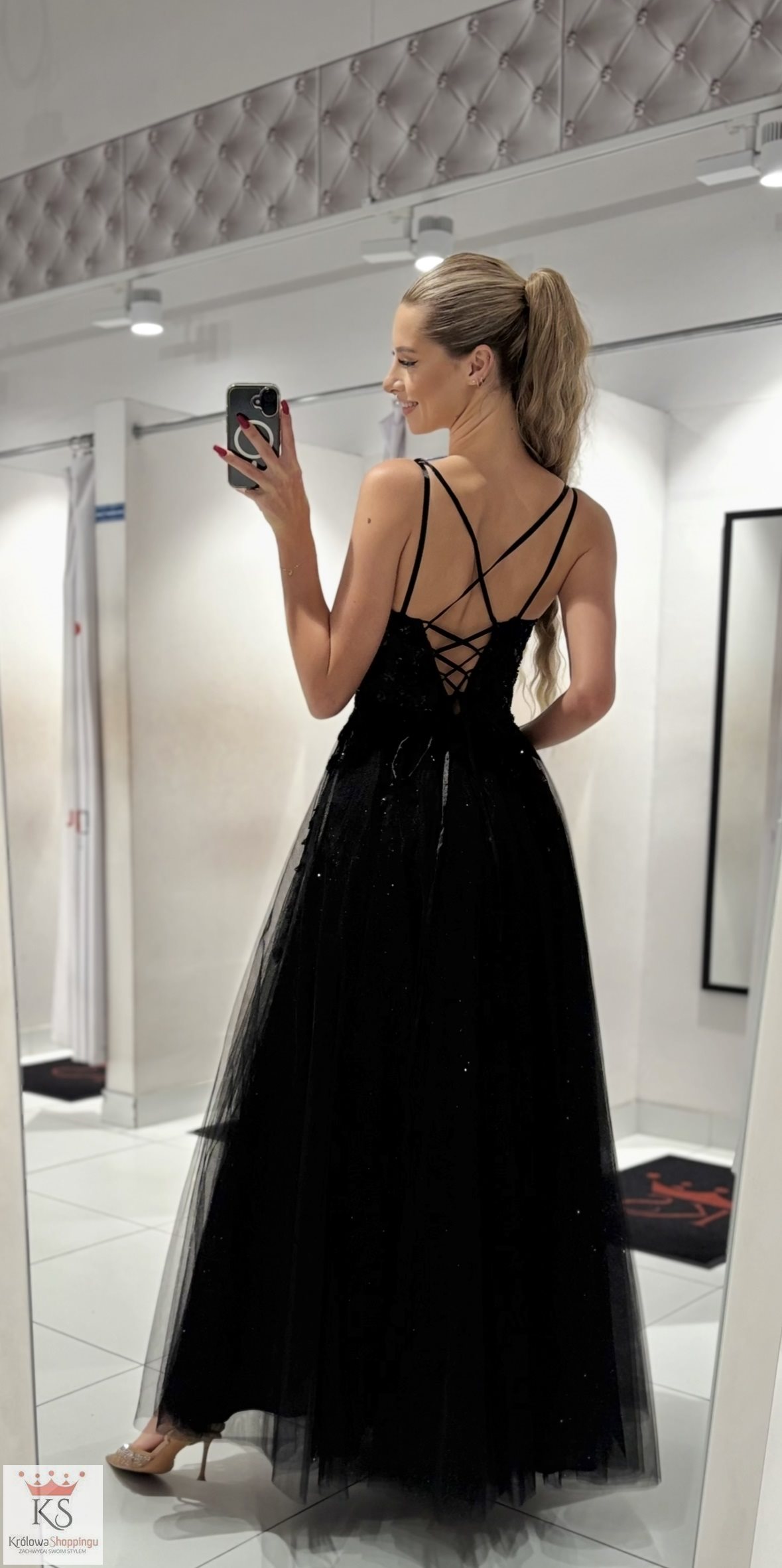 Powiadomienie o dostępności: Sukienka długa tiulowa brokat kwiatki gorset czerń