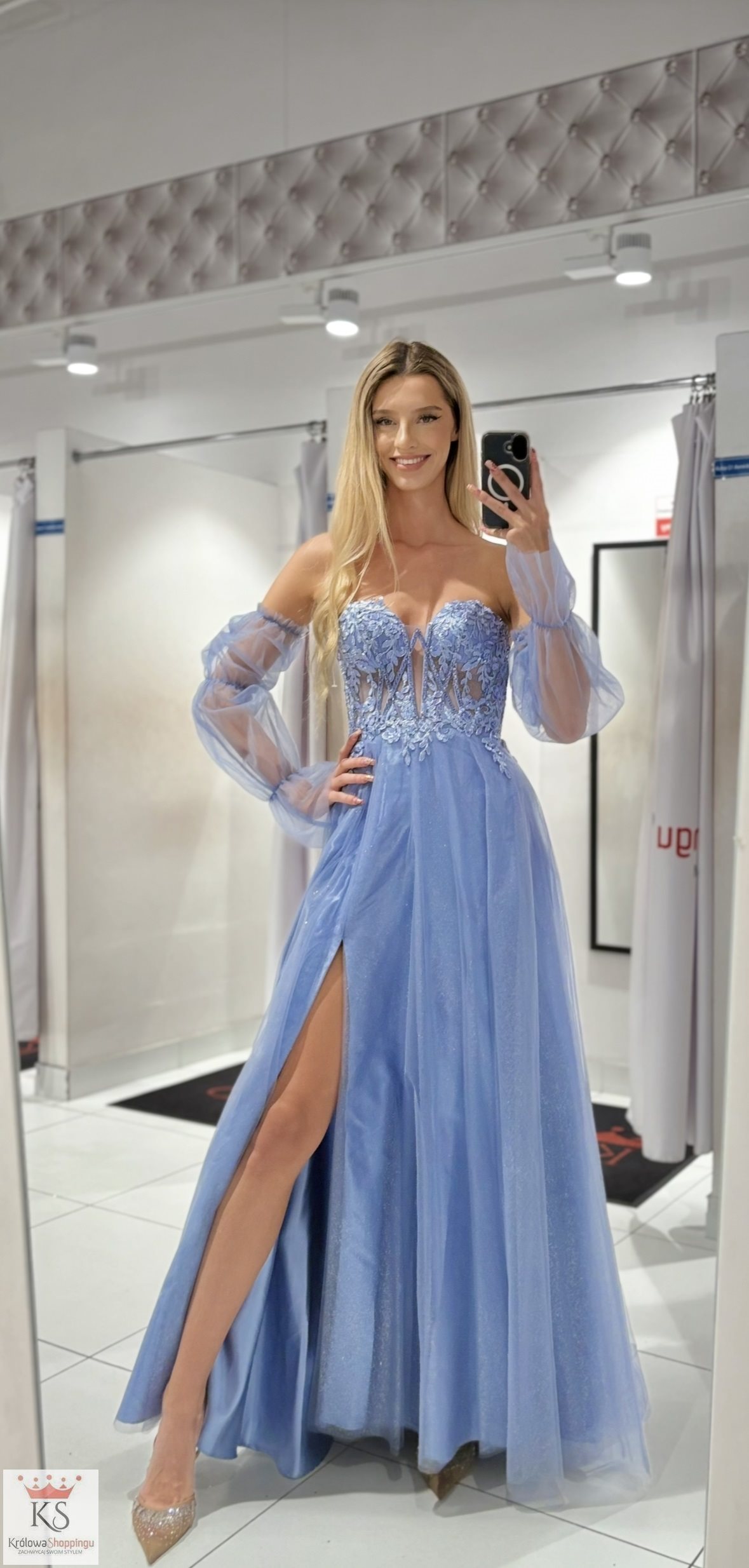 Powiadomienie o dostępności: Sukienka długa tiulowa gorset zdobiony rękaw jeans
