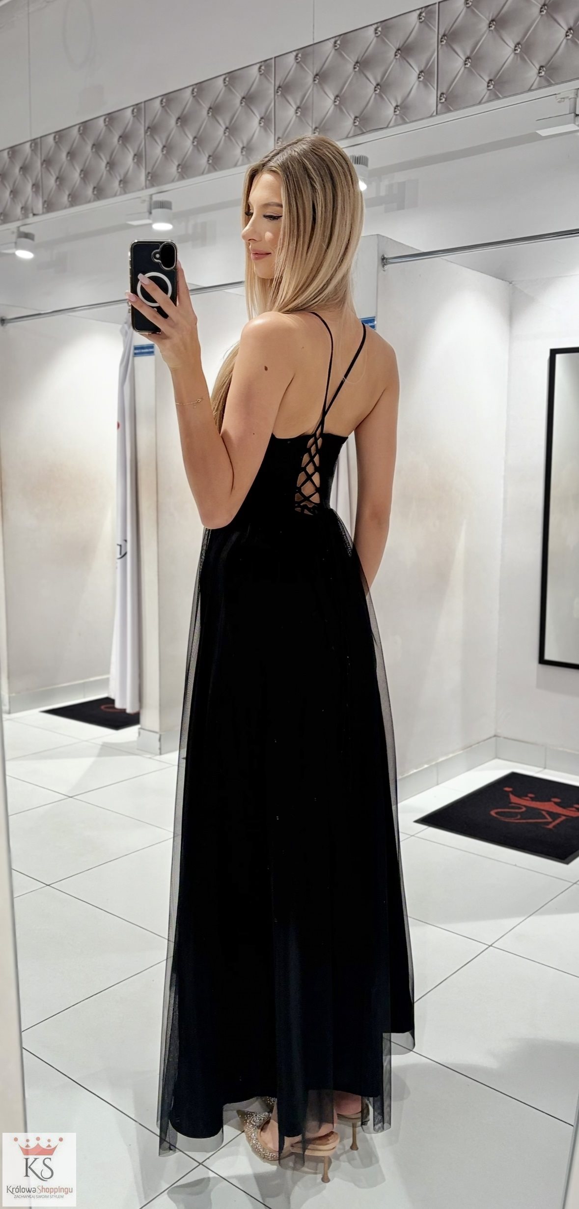 Powiadomienie o dostępności: Sukienka długa wiązanie błysk tiul czerń