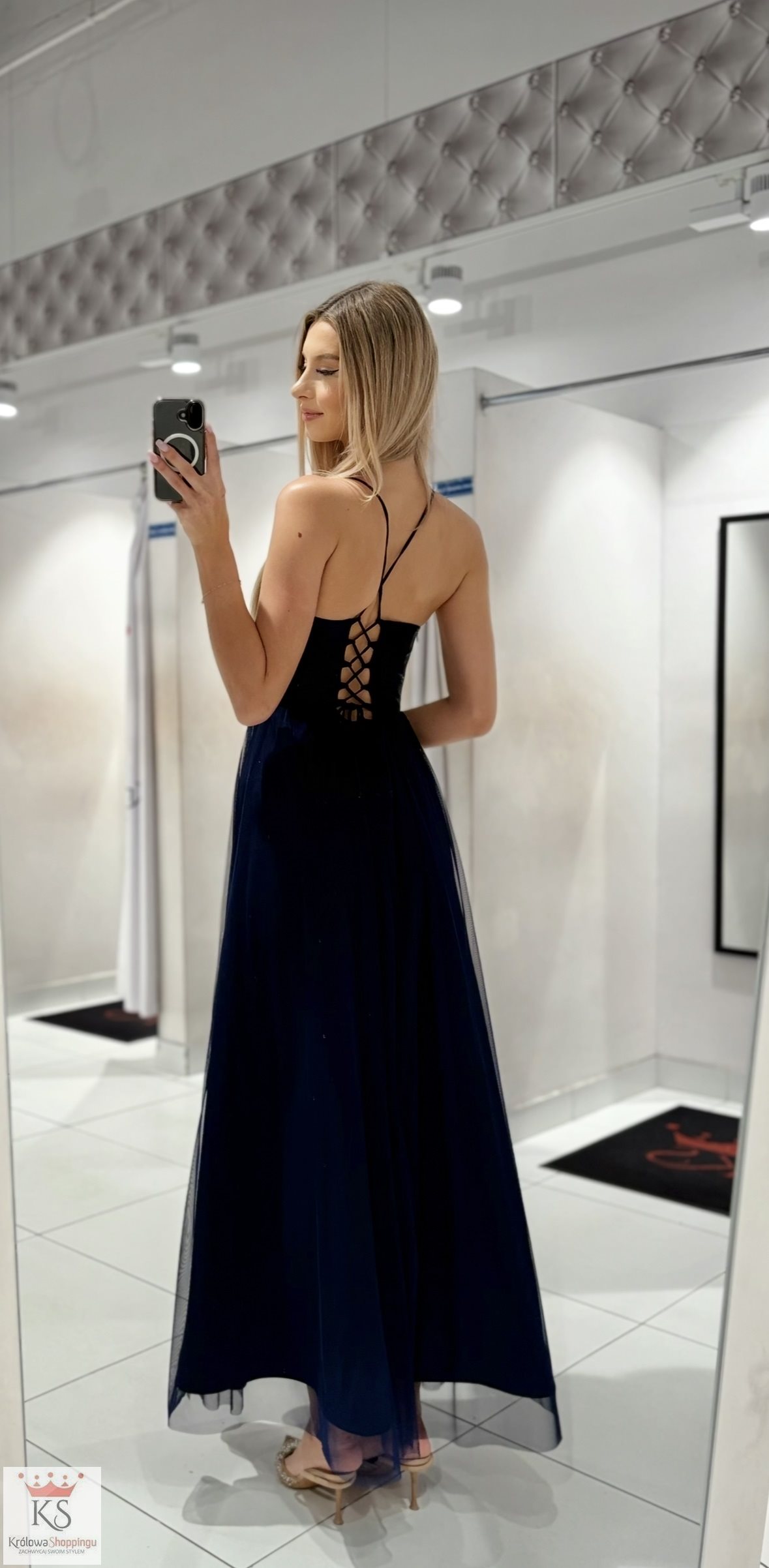 Powiadomienie o dostępności: Sukienka długa wiązanie błysk tiul granat