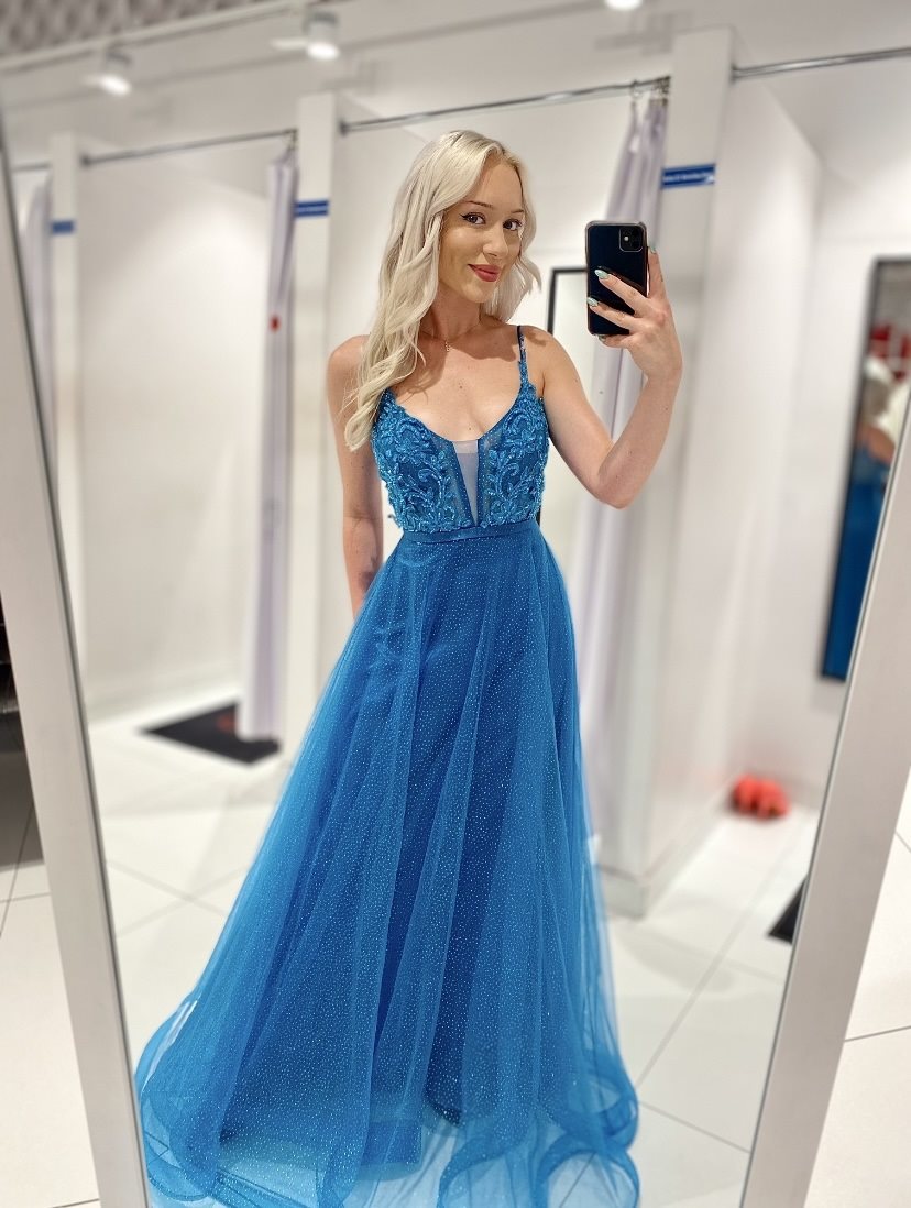 Powiadomienie o dostępności: Sukienka długa z naszywaną aplikacją petrol