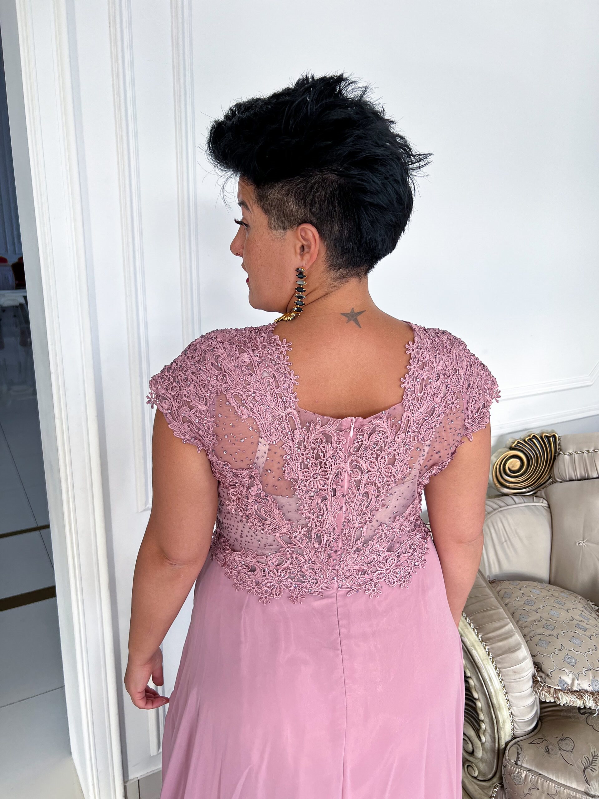 Sukienka długa z rękawkiem zdobienia róż