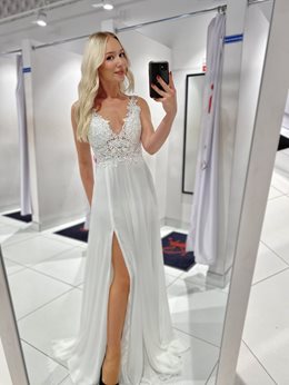 Powiadomienie o dostępności: Sukienka długa zdobiona góra szyfon biała