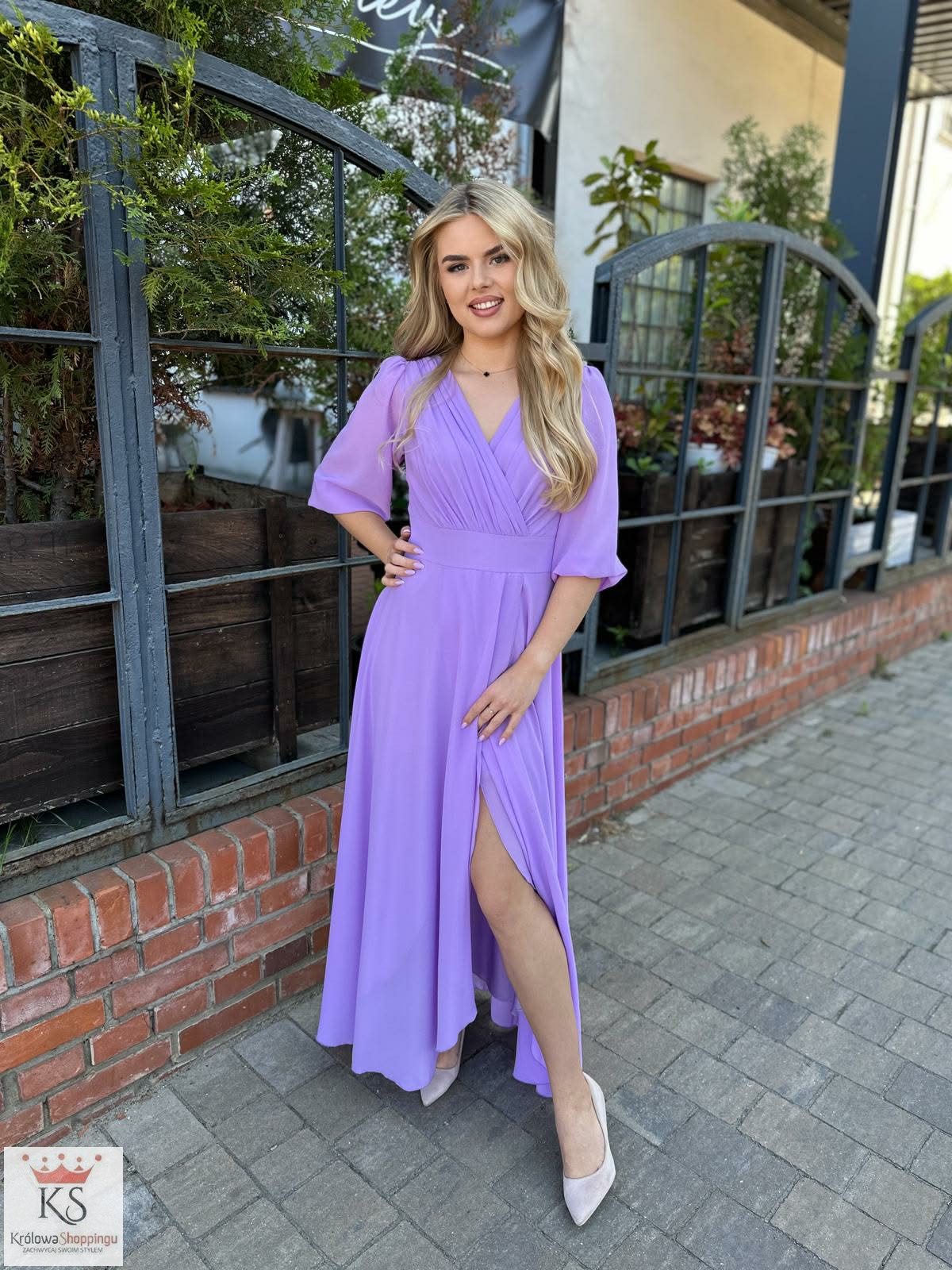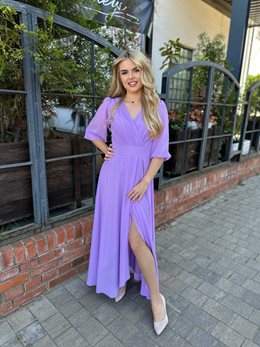 Sukienka długa zwiewna szyfon rękaw 3/4 lilia