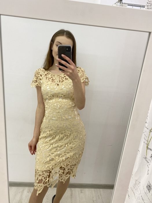 Powiadomienie o dostępności: Sukienka dopasowana zabudowany dekolt beż