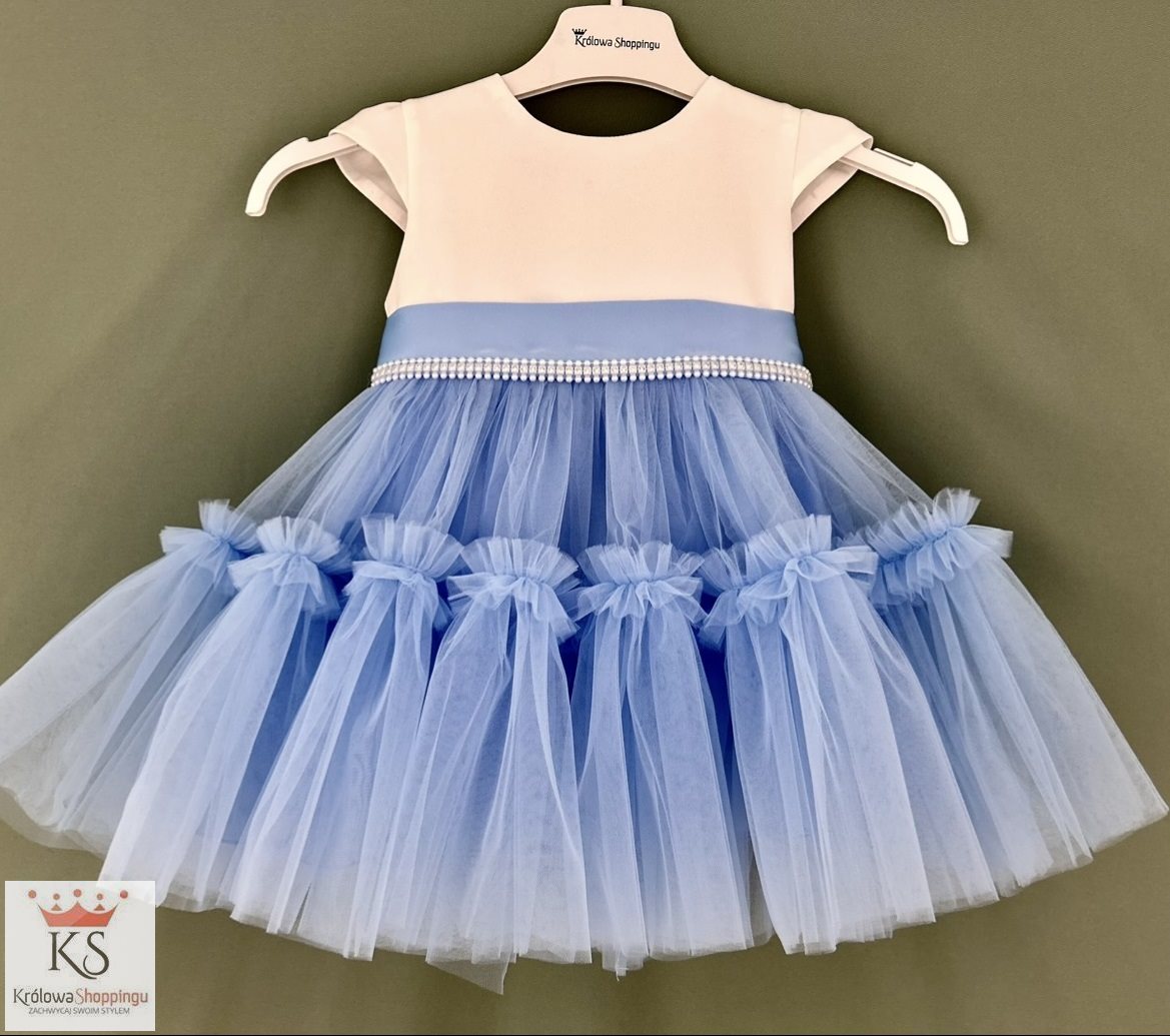 Sukienka dziecięca rozłożysty tiulowy dół błękit