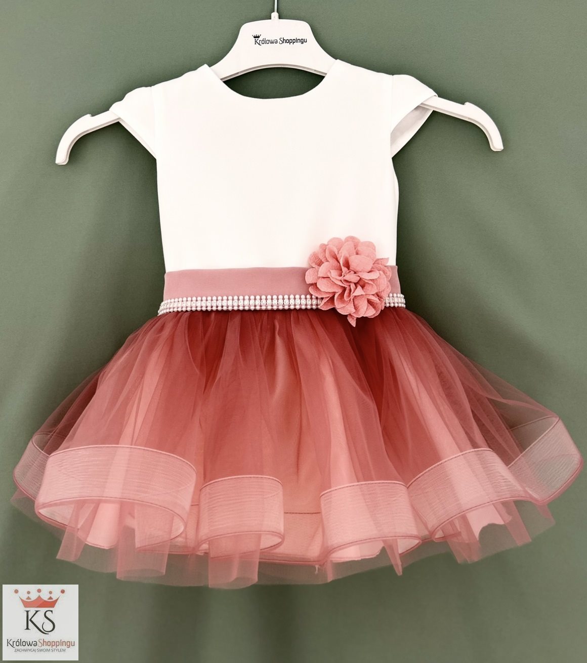 Powiadomienie o dostępności: Sukienka dziecięca tiulowa pasek biel/róż