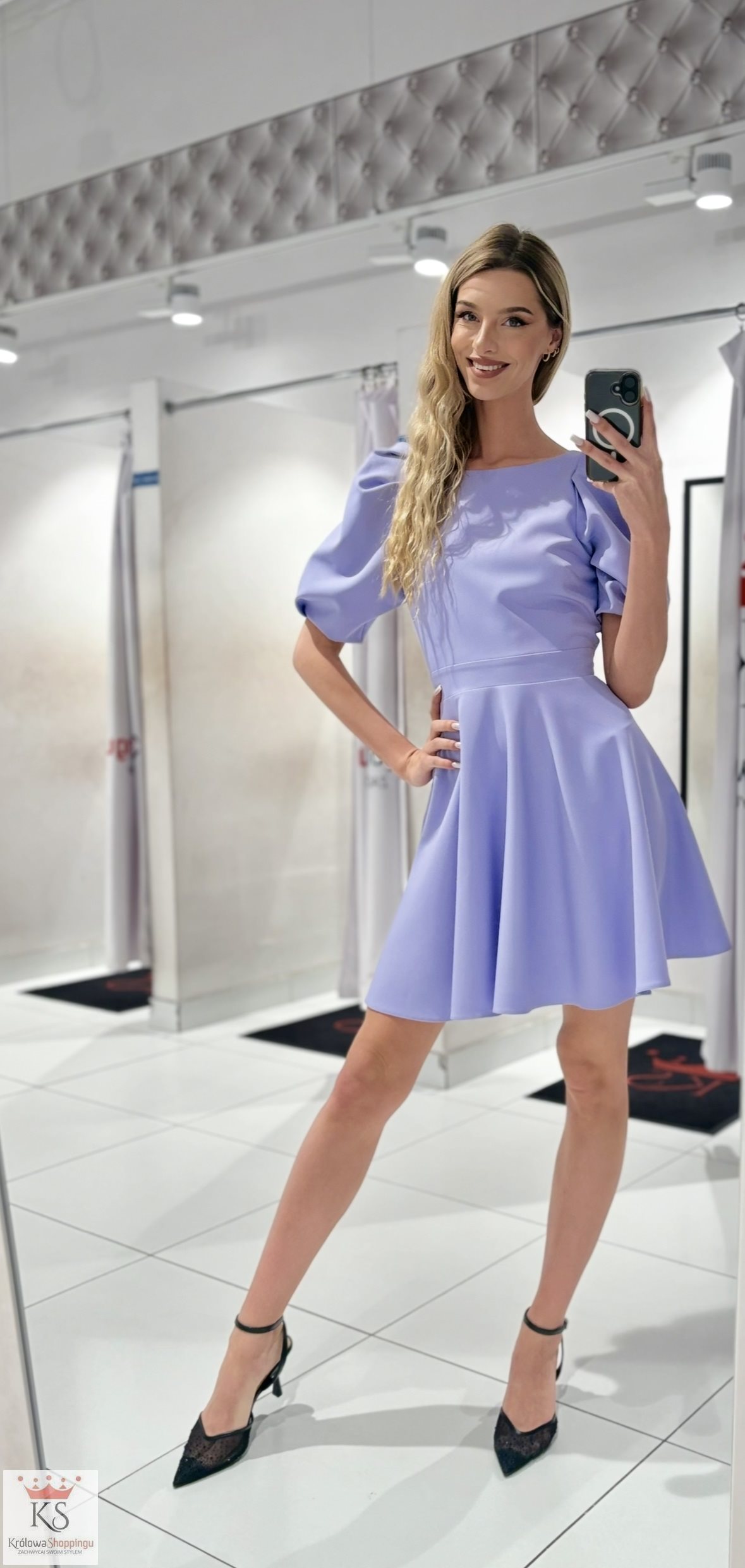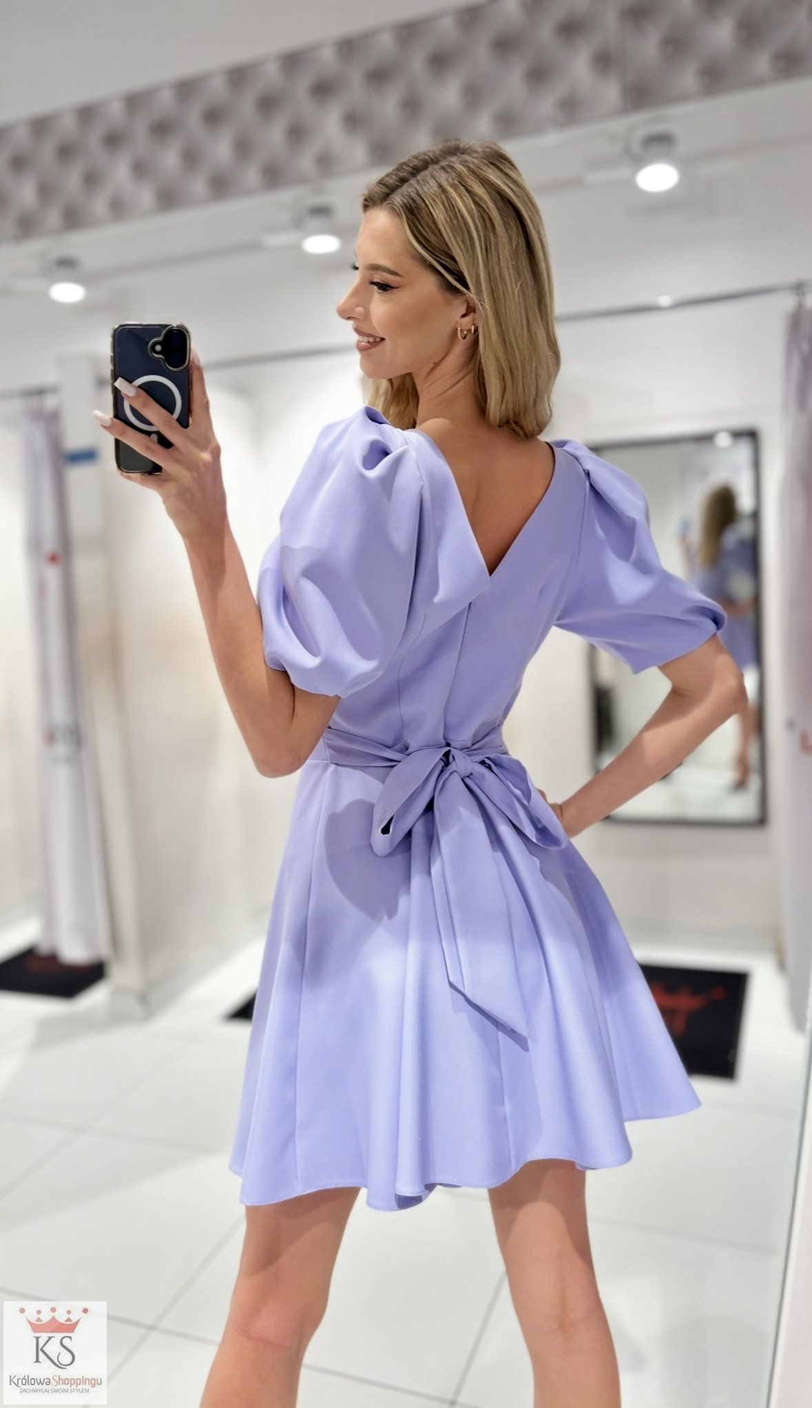Powiadomienie o dostępności: Sukienka krótka bufiaste rękawki lilia