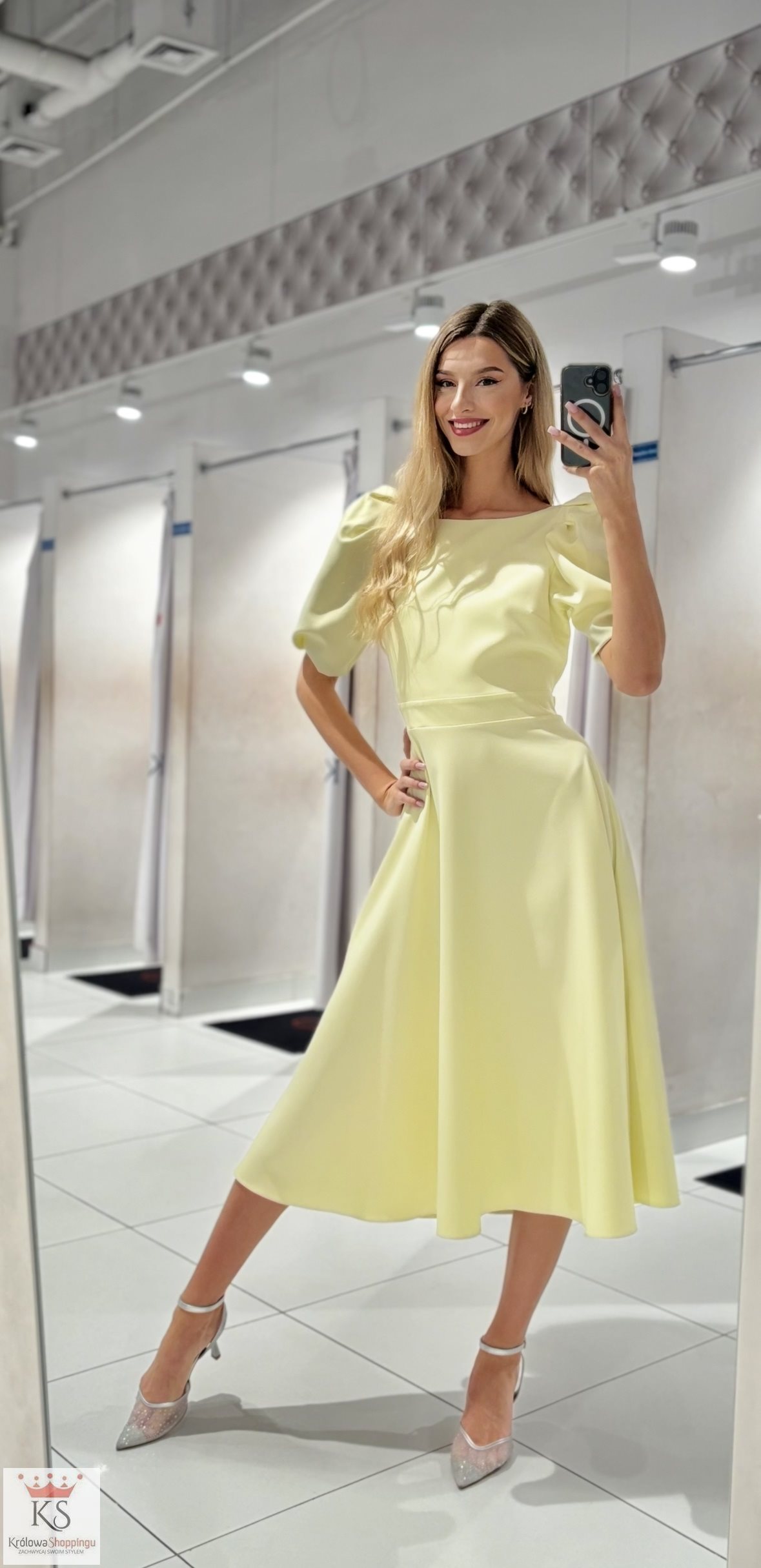 Sukienka midi bufiaste rękawki żółta