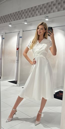 Powiadomienie o dostępności: Sukienka midi marszczony rękawek zakładka biel