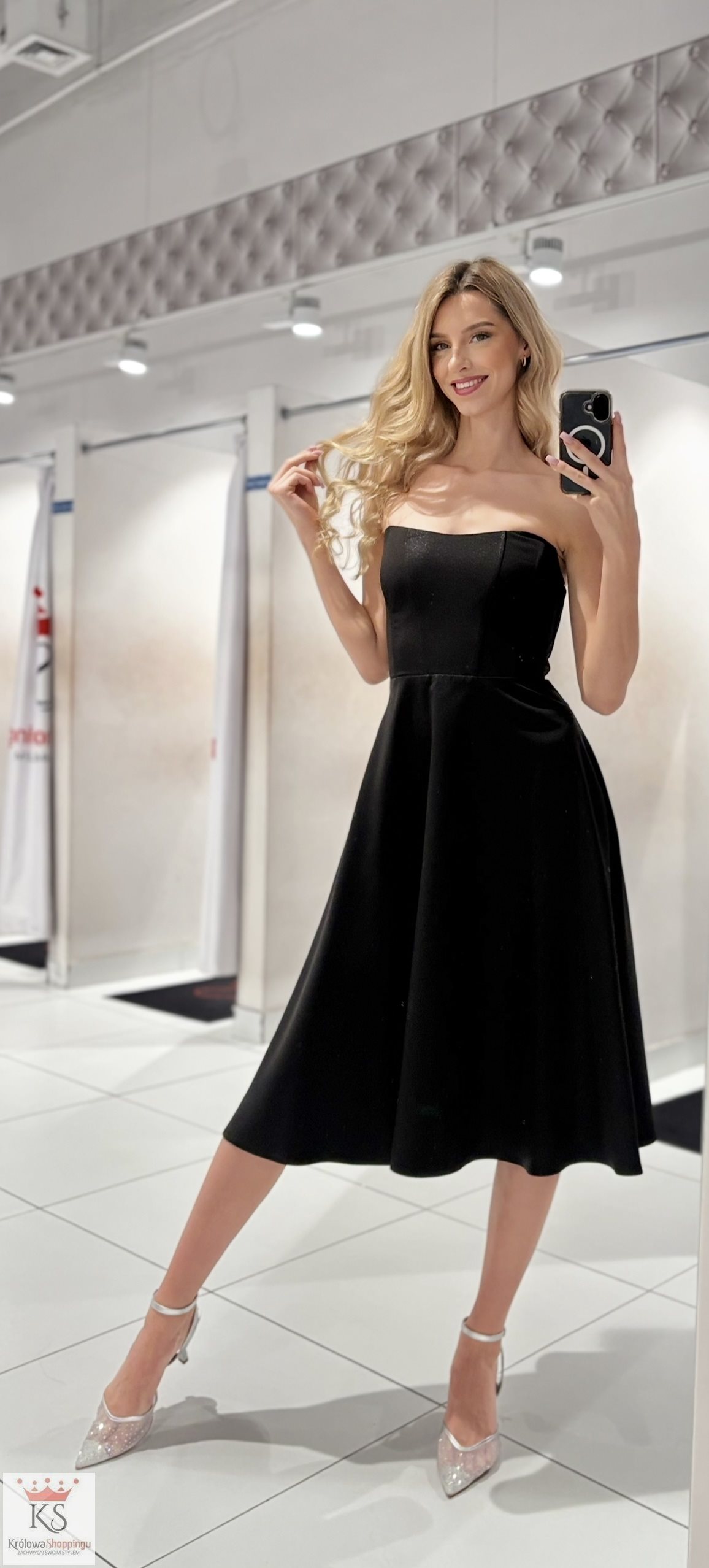 Powiadomienie o dostępności: Sukienka midi prosta bez ramiączek błysk czerń