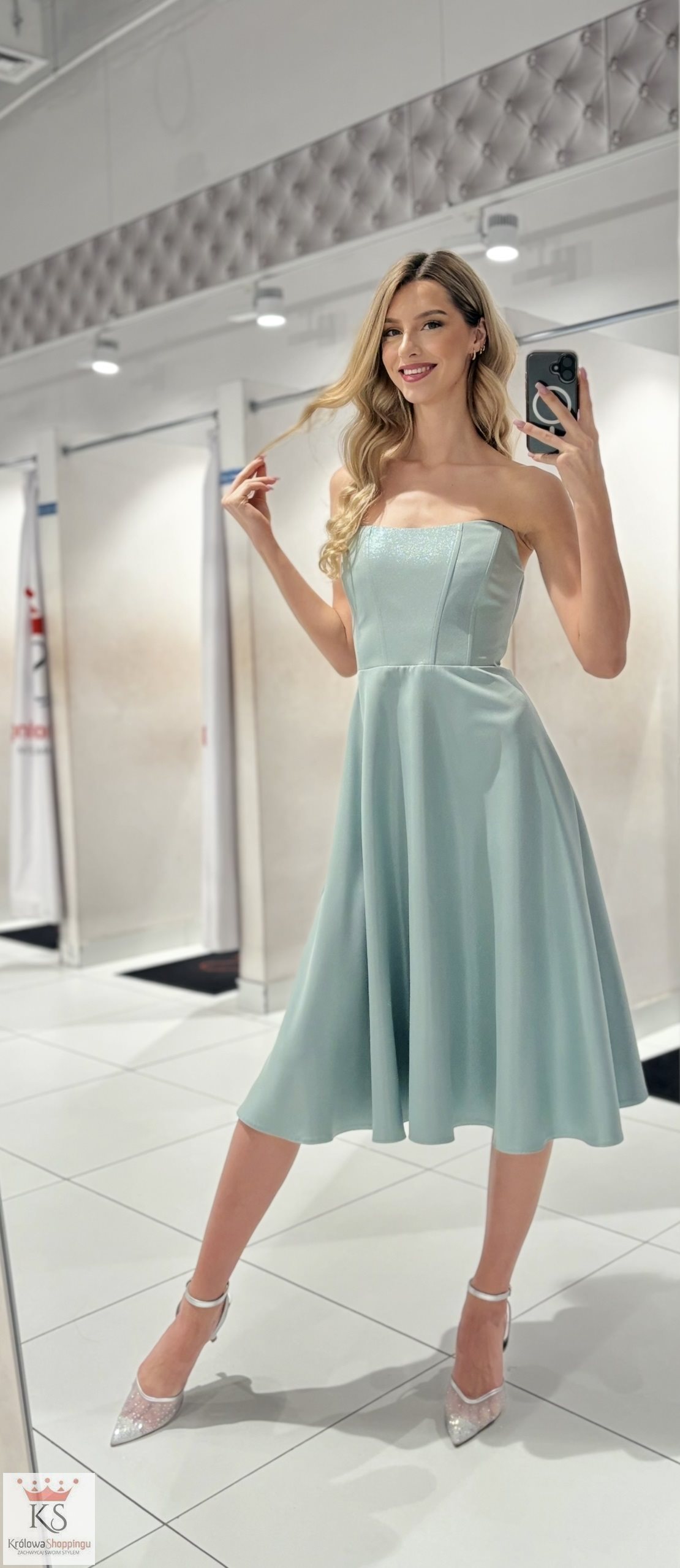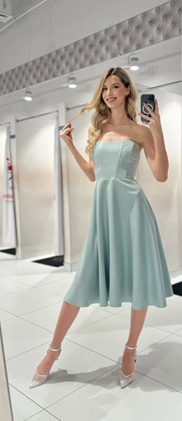 Sukienka midi prosta bez ramiączek błysk pistacja