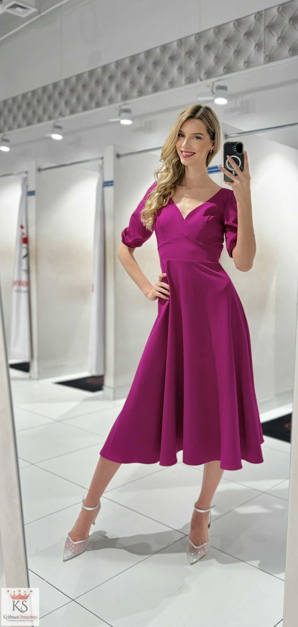 Sukienka midi rękawek wiązanie tył biskupi