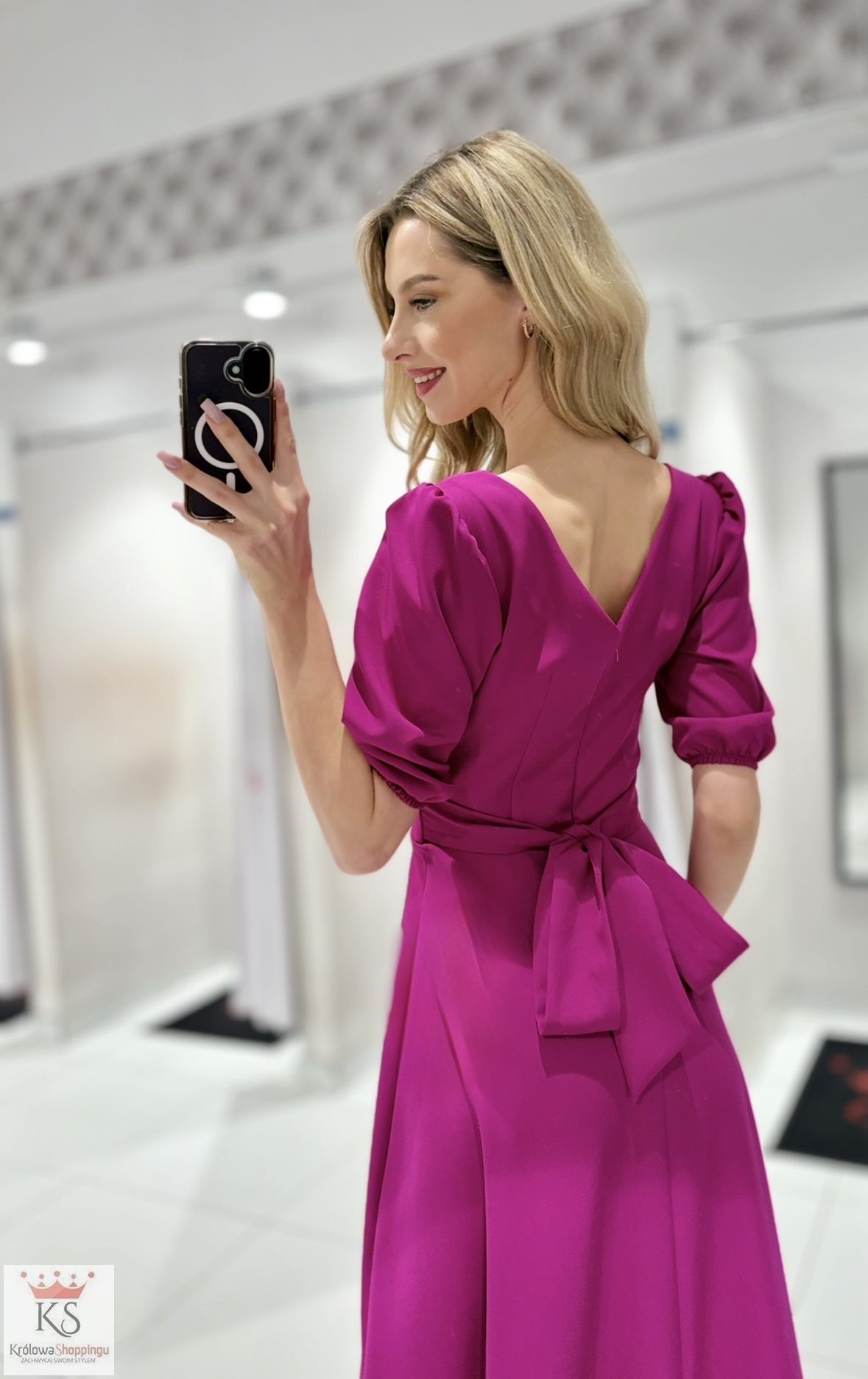 Powiadomienie o dostępności: Sukienka midi rękawek wiązanie tył biskupi